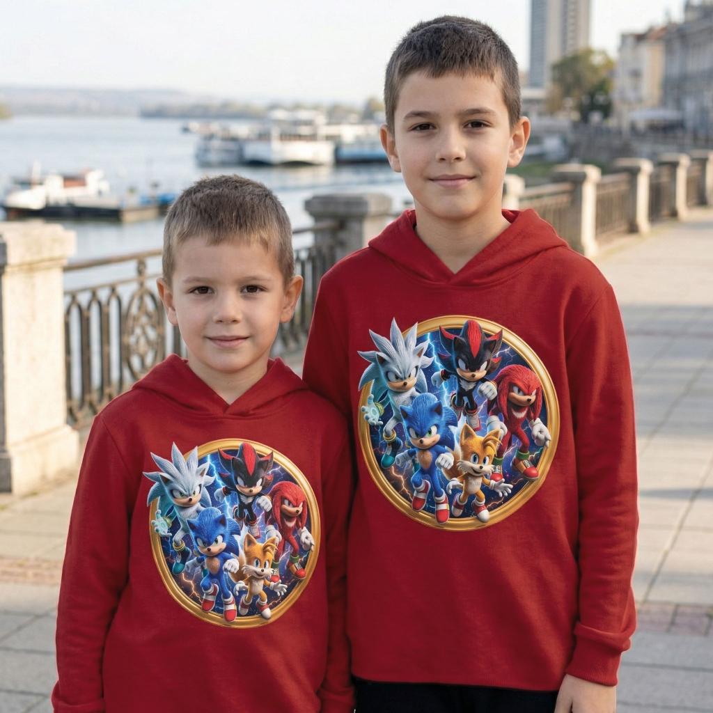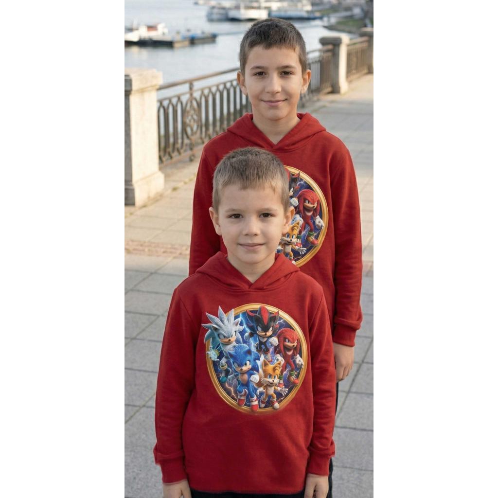 Готови за скорост и приключения? ⚡ Тази впечатляваща блуза с качулка в наситен керемиден цвят ще се превърне в любимата дреха на всеки малък фен на бързите герои! С ефектен DTF печат с динамични персонажи, моделът съчетава удобство, стил и истинско WOW излъчване 💥