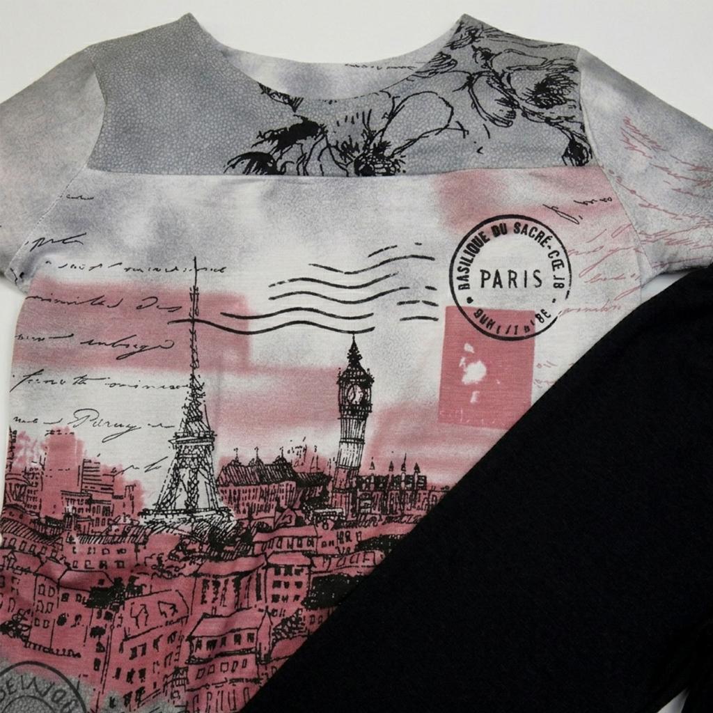 👗 Туника с ефектен дигитален печат + клин – артистичният градски дизайн с флорални елементи се съчетава прекрасно с нежен розов клин, създавайки визия, пълна с чар и настроение.