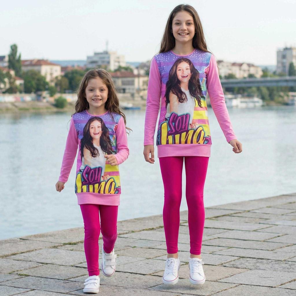 Този детски комплект с дълъг ръкав туника и дълъг клин с дигитален печат „Soy Luna“ е създаден за момичета, които обичат ярките цветове и модерната визия 💖