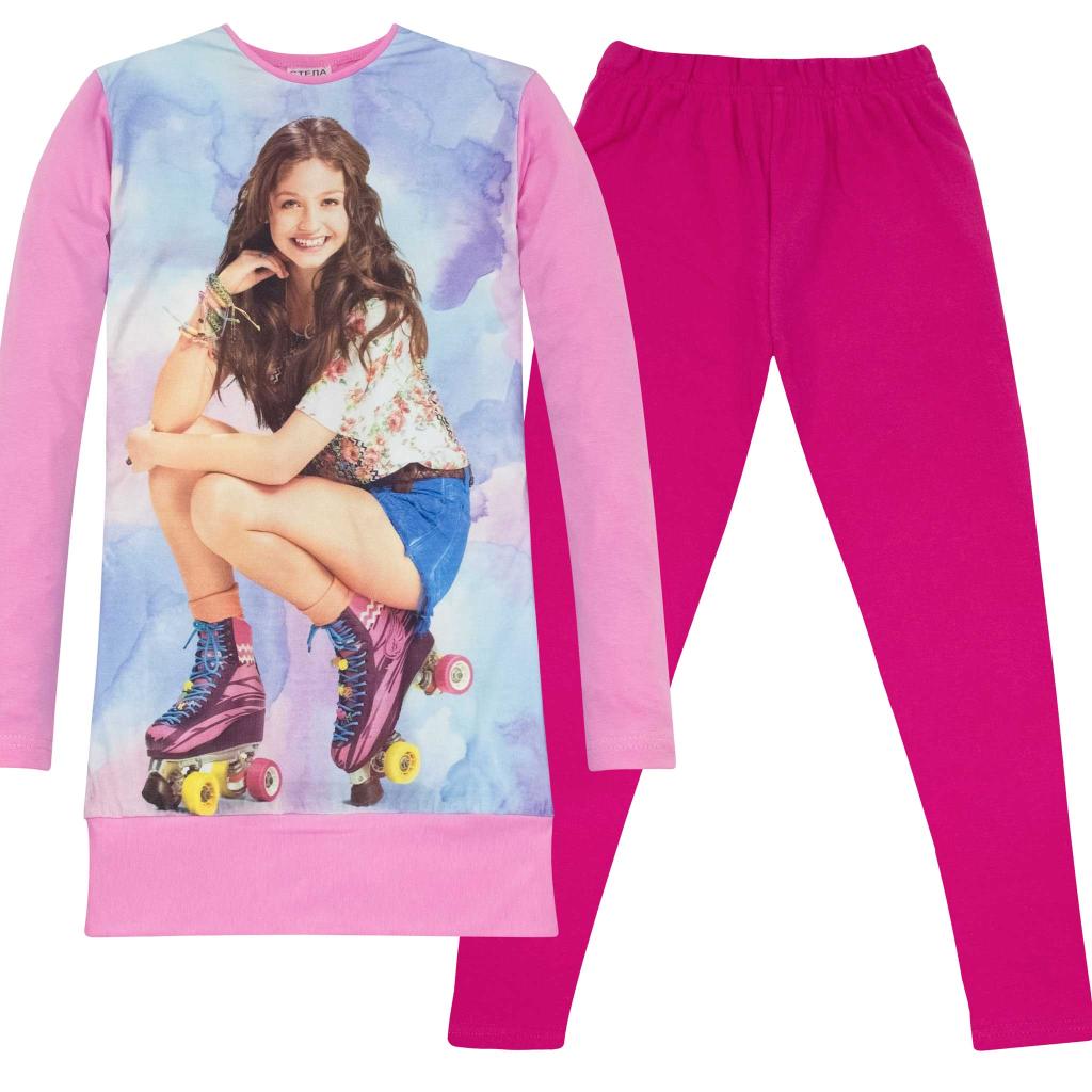 Този детски комплект с дълъг ръкав туника и дълъг клин с дигитален печат „Soy Luna“ е създаден за момичета, които обичат ярките цветове и модерната визия 💖