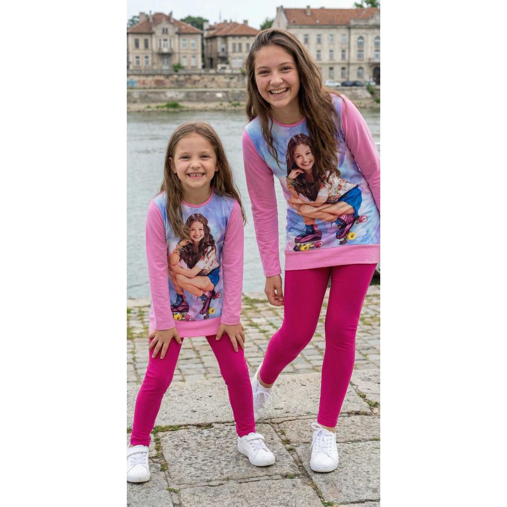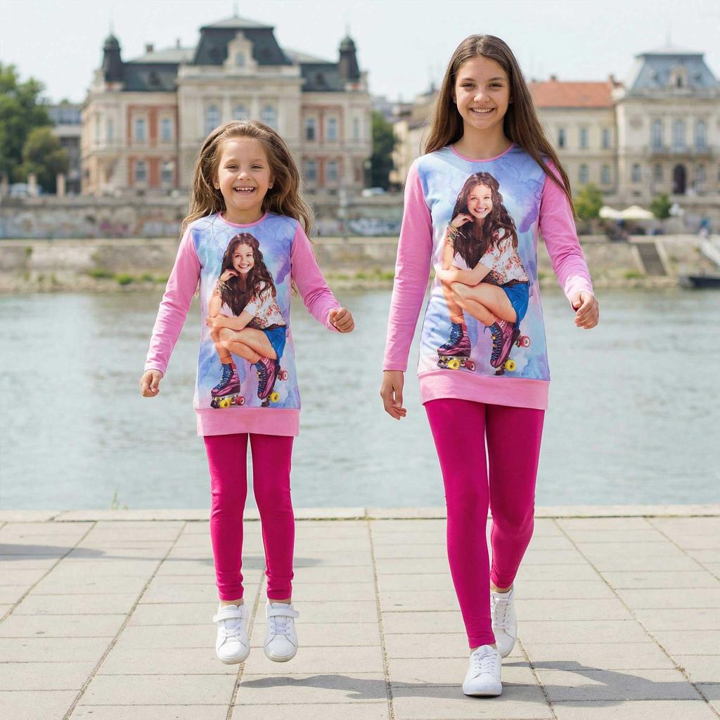 Туниката впечатлява с цветен дизайн и ефектен дигитален печат, вдъхновен от любимия стил „Soy Luna“, който придава свежест и настроение на всяка визия. В комбинация с удобния едноцветен клин, комплектът е идеален както за училище, така и за ежедневни приключения.