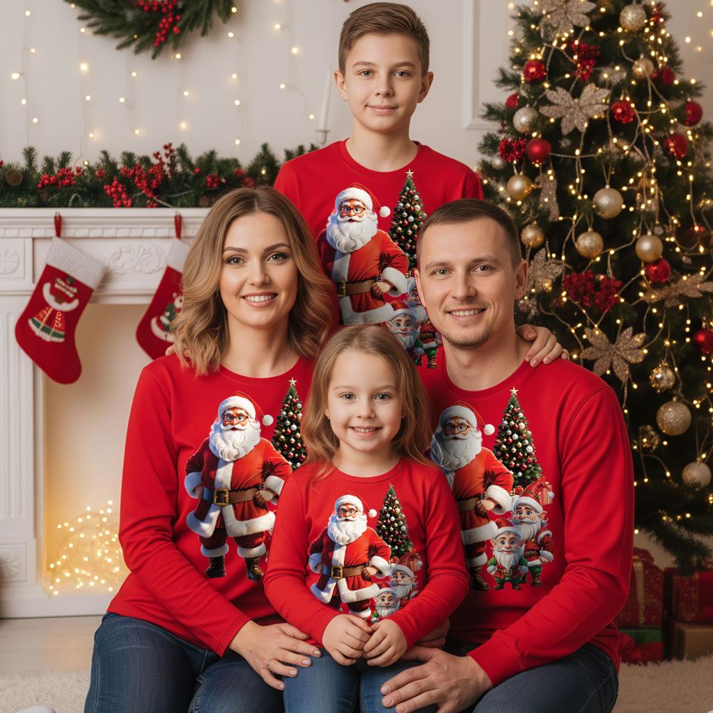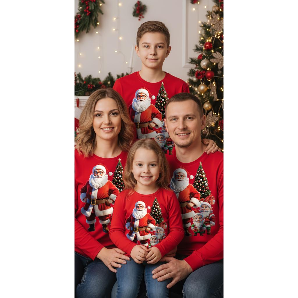 Блуза тънка Дядо Коледа с джуджета в червено