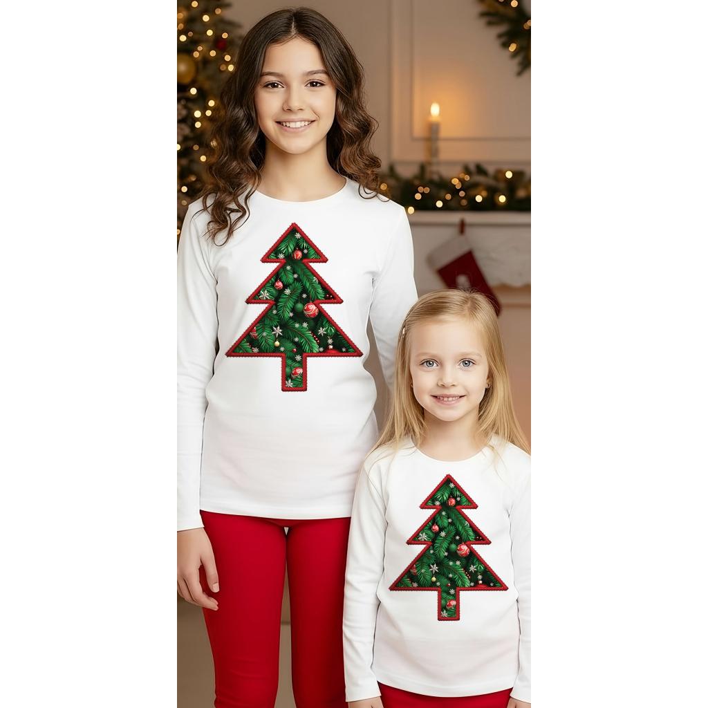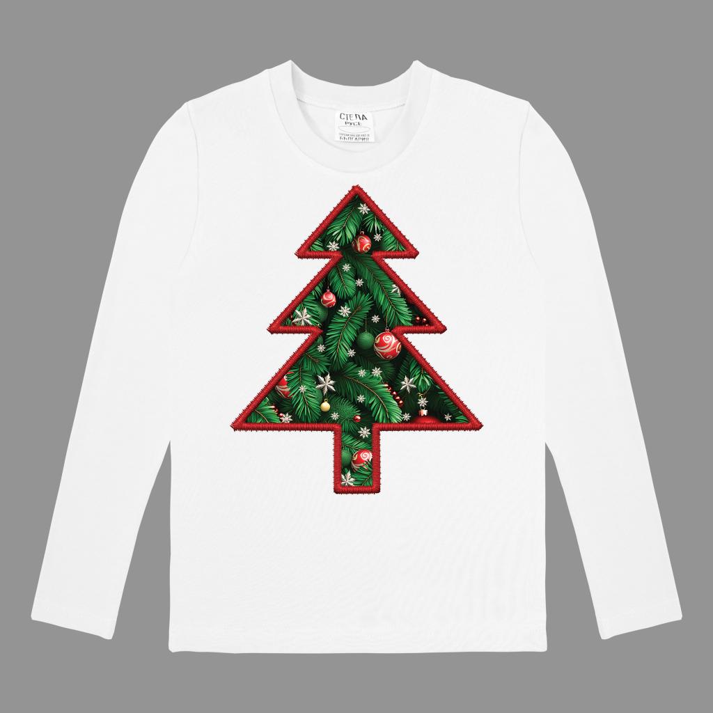 Подгответе се за коледните празници с тази стилна и забавна детска блуза с дълъг ръкав! Класическият бял цвят служи за идеален фон на най-емблематичния символ на Коледа – украсената елха!