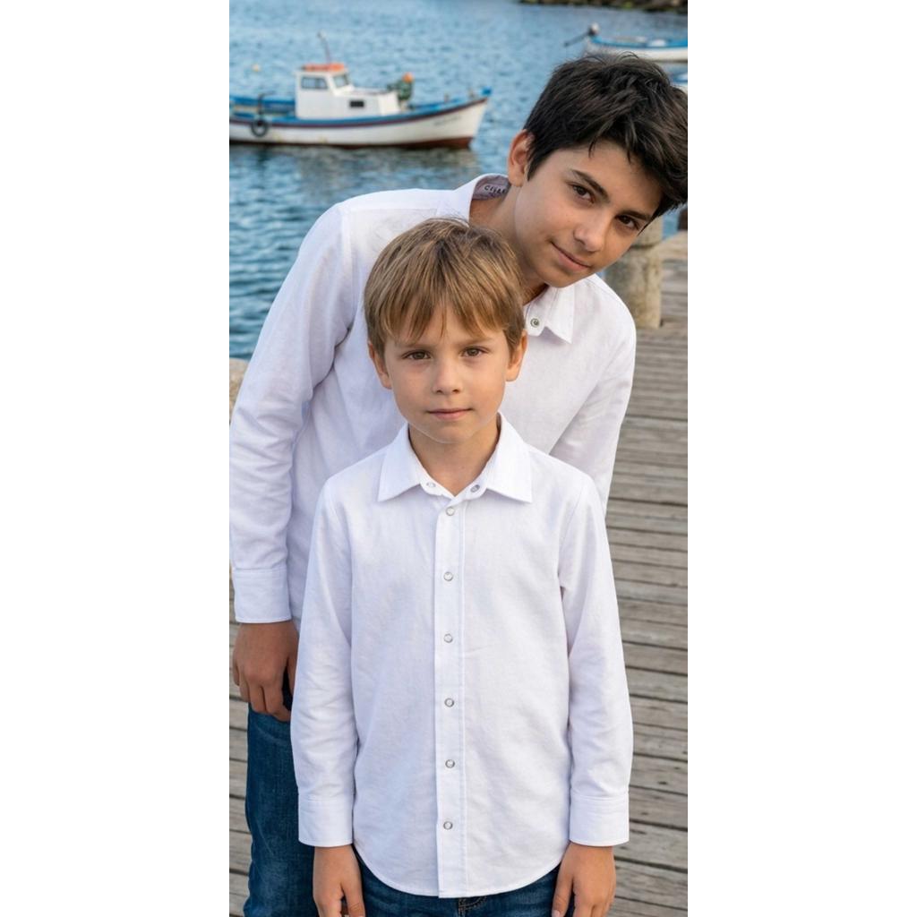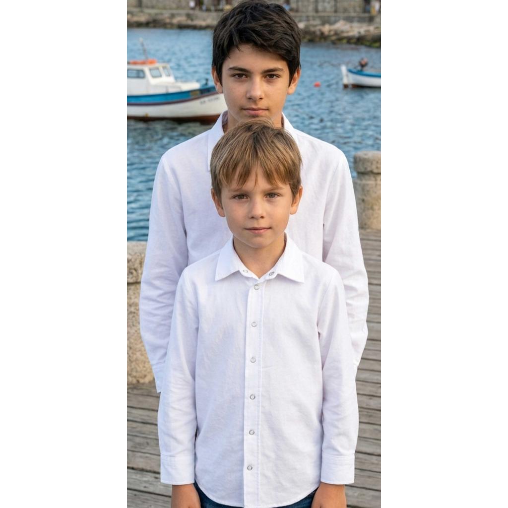 Тази детска бяла риза с дълъг ръкав е истинска класика в гардероба на всеки малък господин 🤍 С изчистен дизайн и стилна визия, тя е перфектният избор както за официални събития, така и за училище или ежедневие.