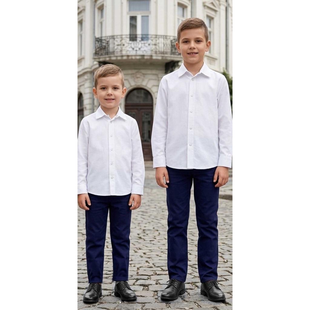 ✨ Детски комплект бяла риза с дълъг ръкав и тъмносин спортно-елегантен панталон – класика с модерен почерк