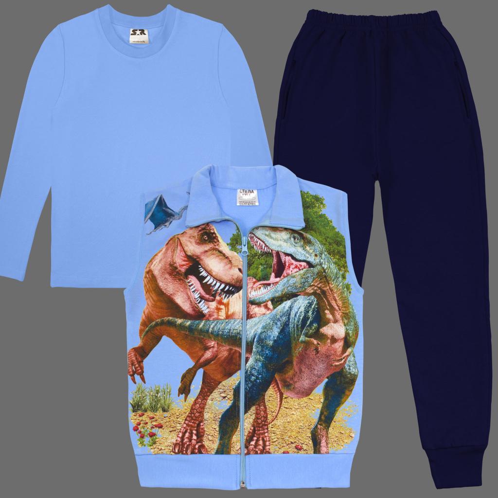 Комплект плътен 3 части (б/е/д) Динозаври в синьо
