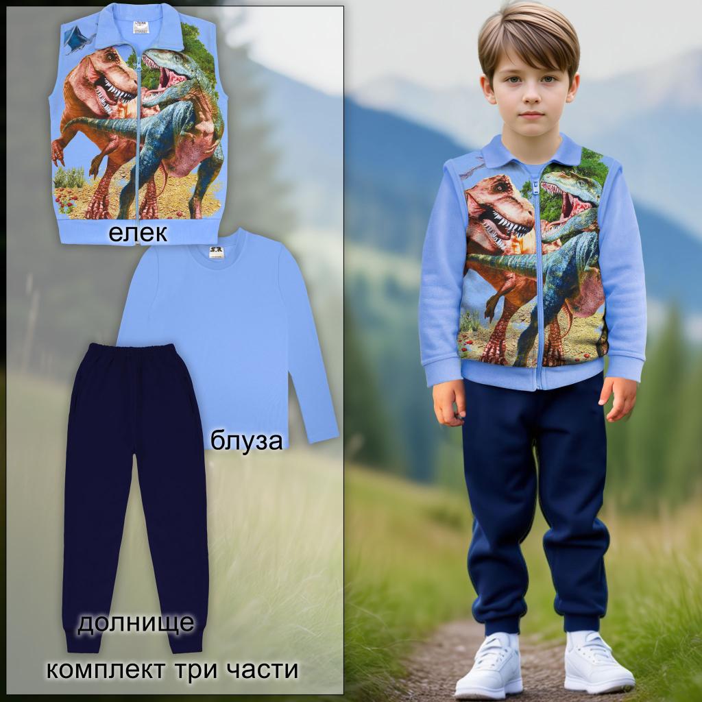 Комплект 3 части (б/е/д ) Динозаври в синьо