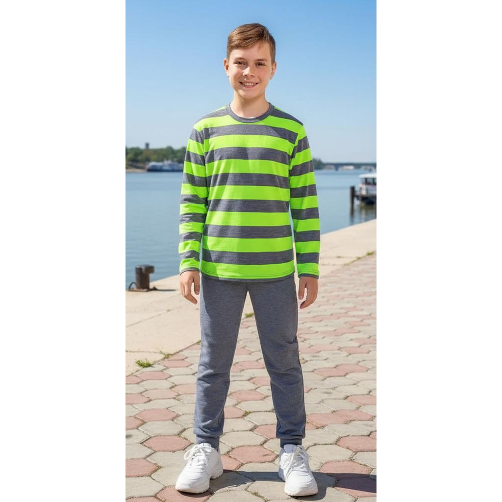 Комплект тънък 2 части (б/д) райе в сиво и резеда