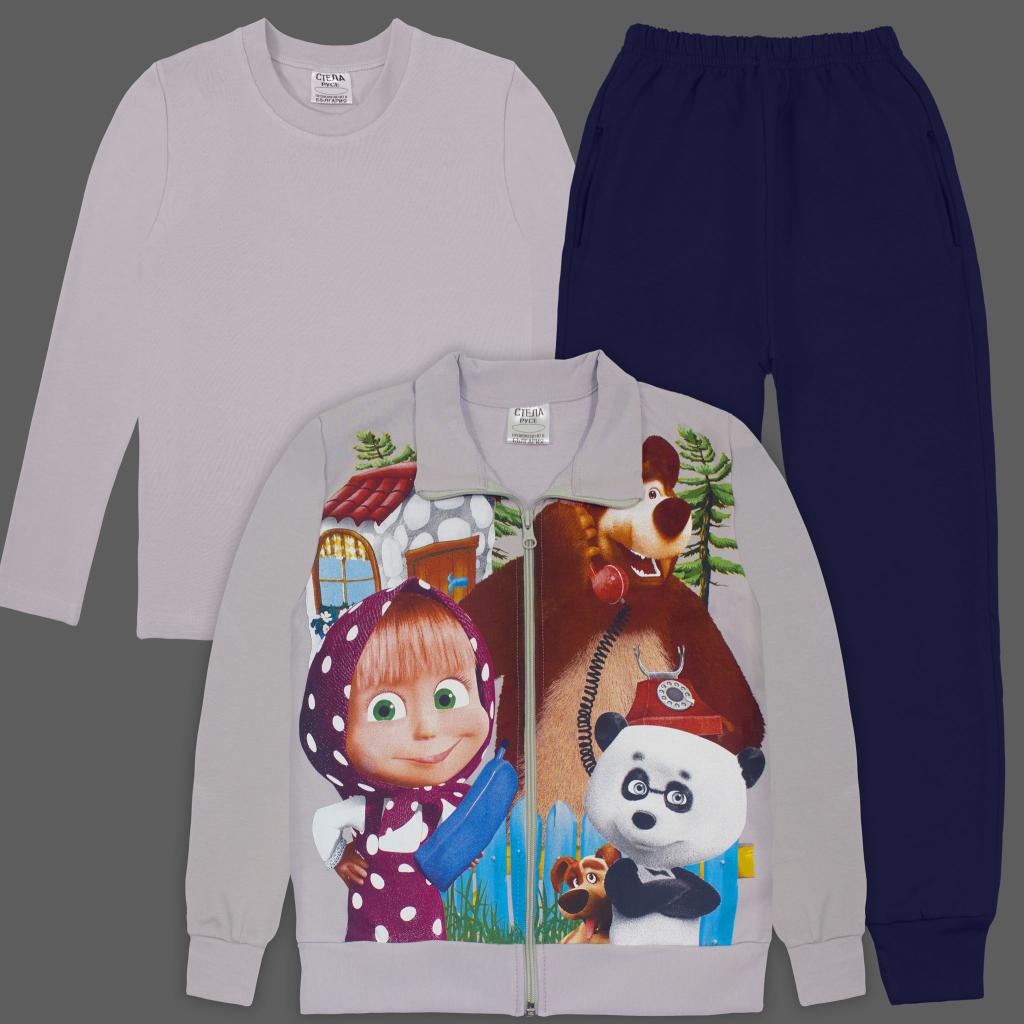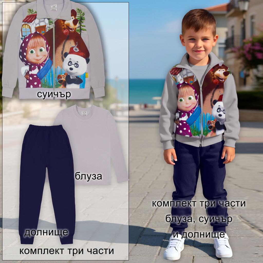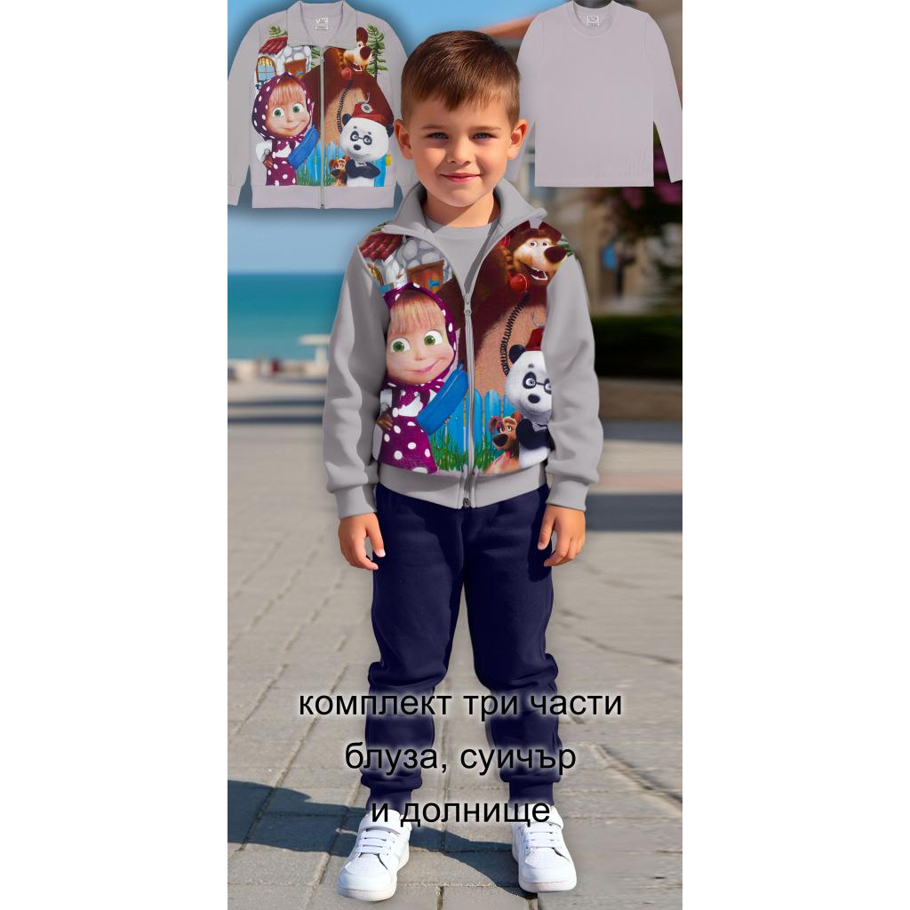 Комплект плътен 3 части (с/б/д) Маша и Мечока в сиво