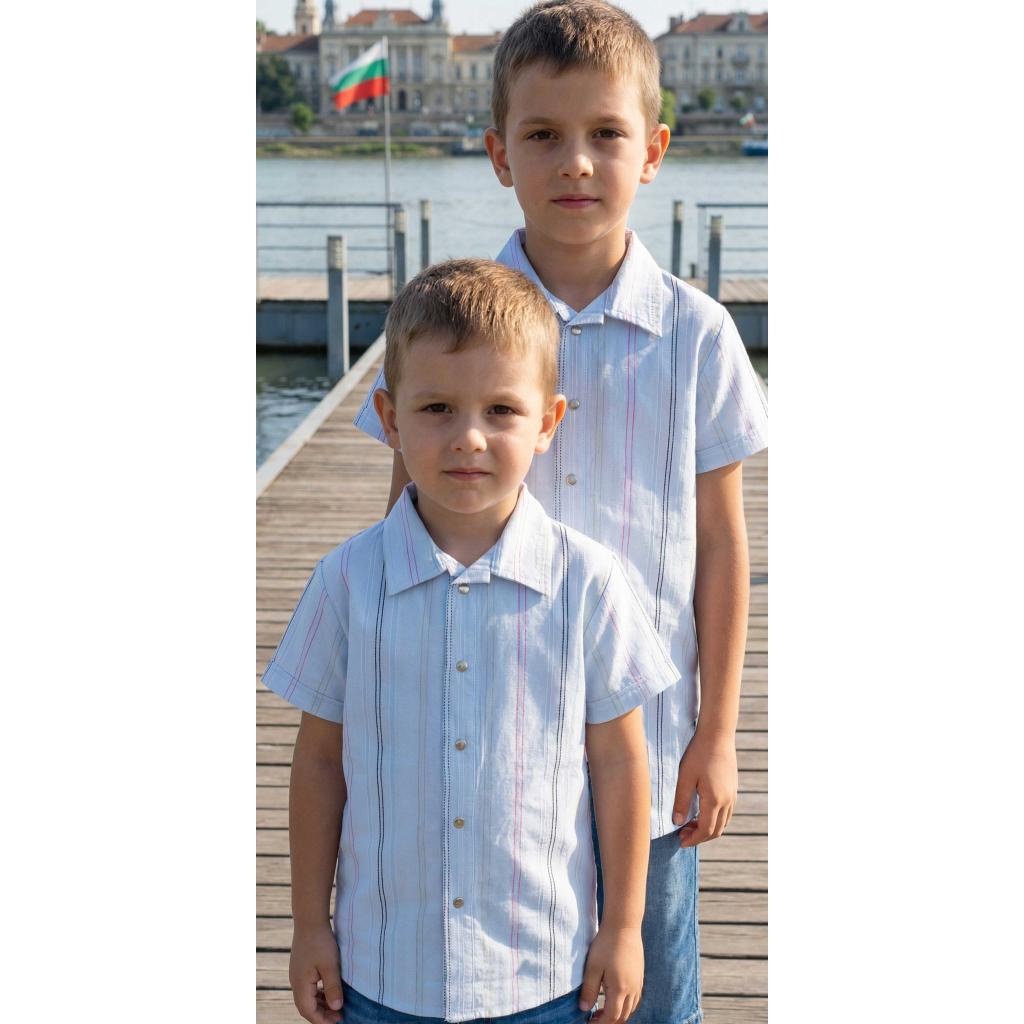 Тази детска риза с къс ръкав и райе е перфектното съчетание между елегантност и комфорт. Със своя модерен дизайн и свежи линии, тя придава стилна визия на всяко момче – както за ежедневие, така и за по-специални поводи 👌