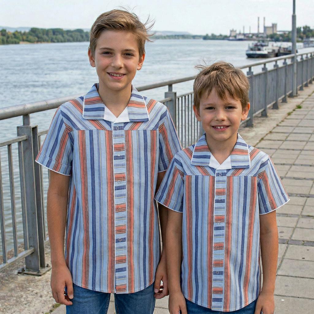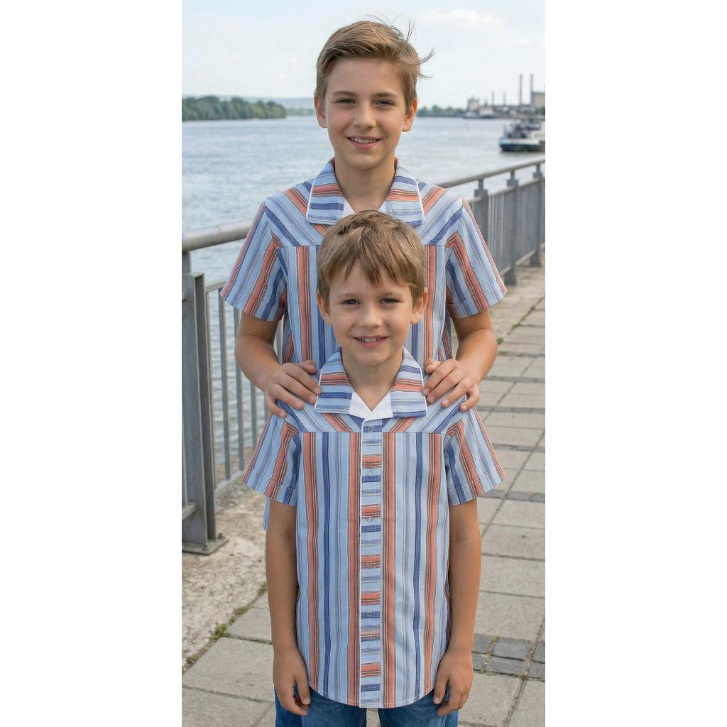 Този детски комплект риза с райе и дънкови бермуди 3/4 е перфектният избор за момчета, които обичат да изглеждат стилно и да се чувстват удобно през топлите дни ☀️