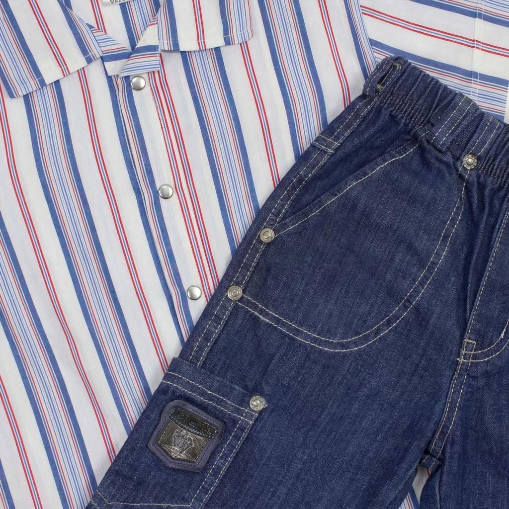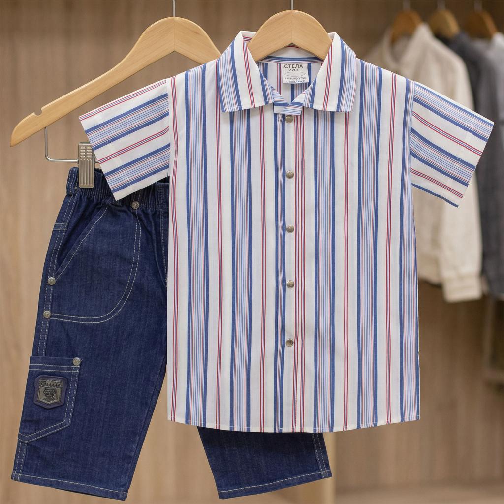 Този детски комплект риза с райе и дънкови бермуди 3/4 е перфектният избор за момчета, които обичат да изглеждат стилно и да се чувстват удобно през топлите дни ☀️
