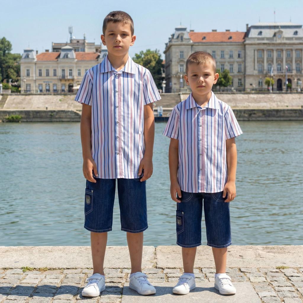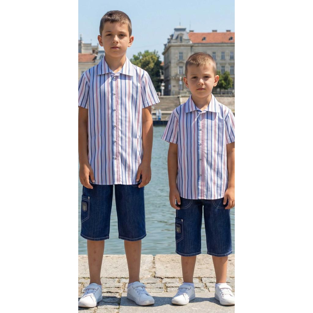 Детски комплект риза райе с къс ръкав и дънкови бермуди 3/4 – стил и свобода в едно