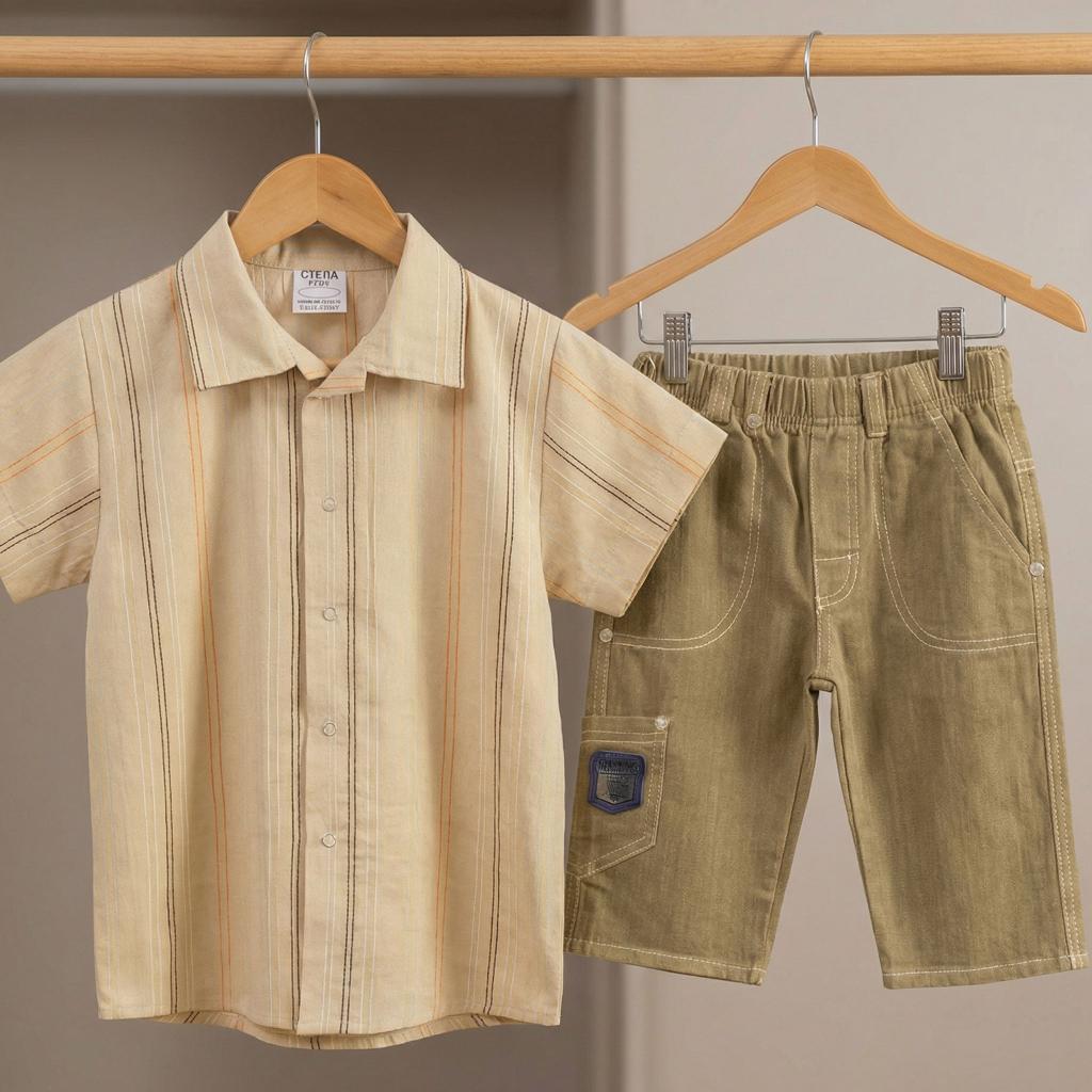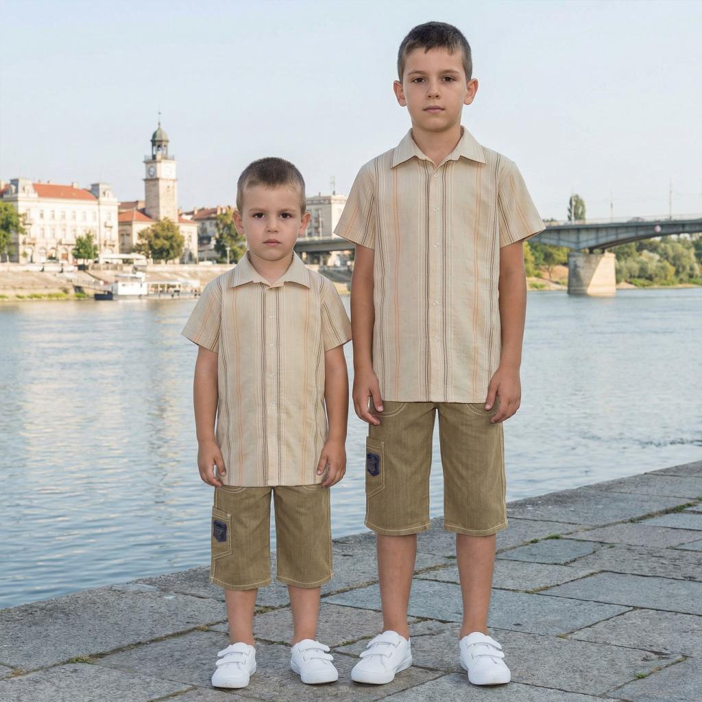 Детски комплект от риза с къс ръкав и бермуди за момче.