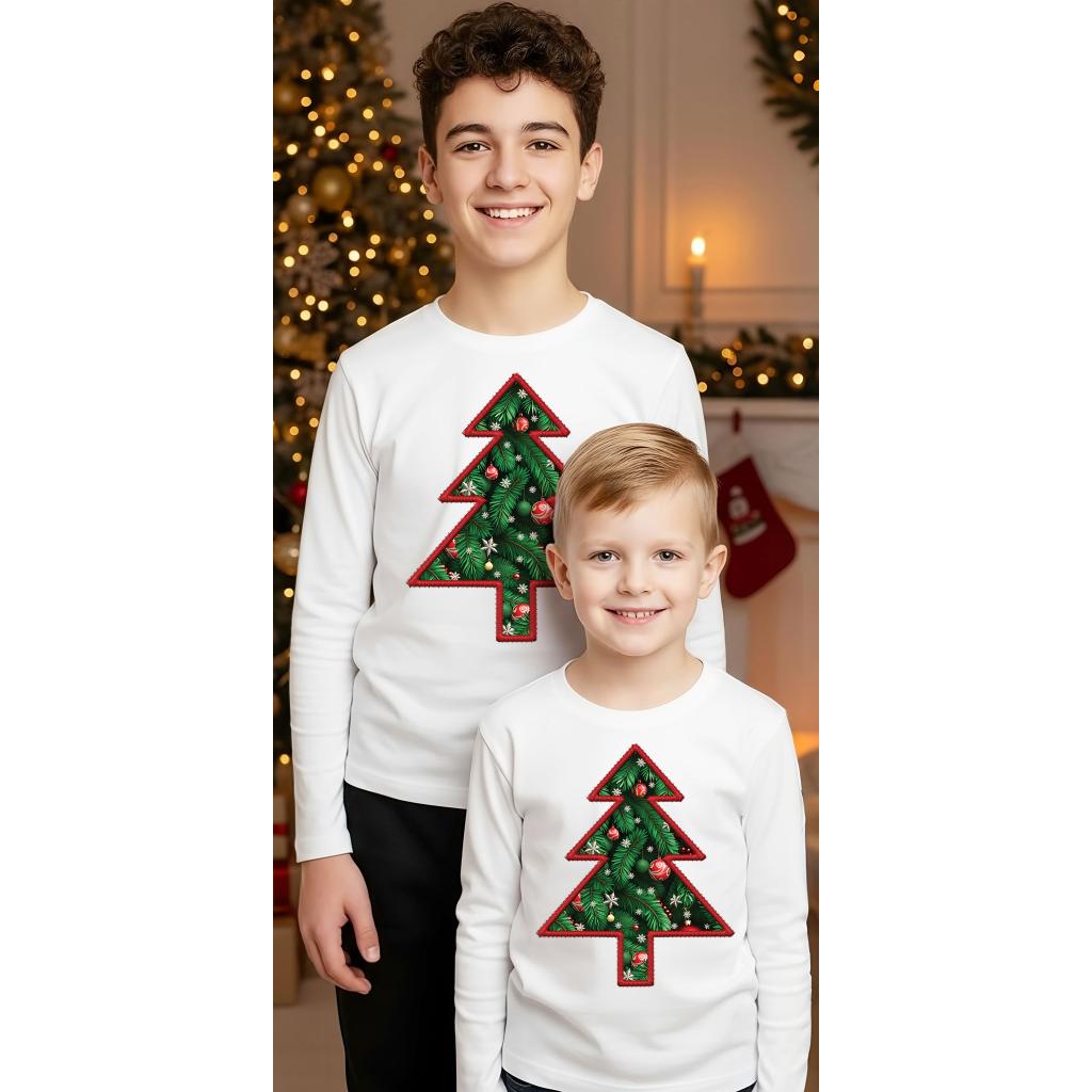 Подгответе се за коледните празници с тази стилна и забавна детска блуза с дълъг ръкав! Класическият бял цвят служи за идеален фон на най-емблематичния символ на Коледа – украсената елха!