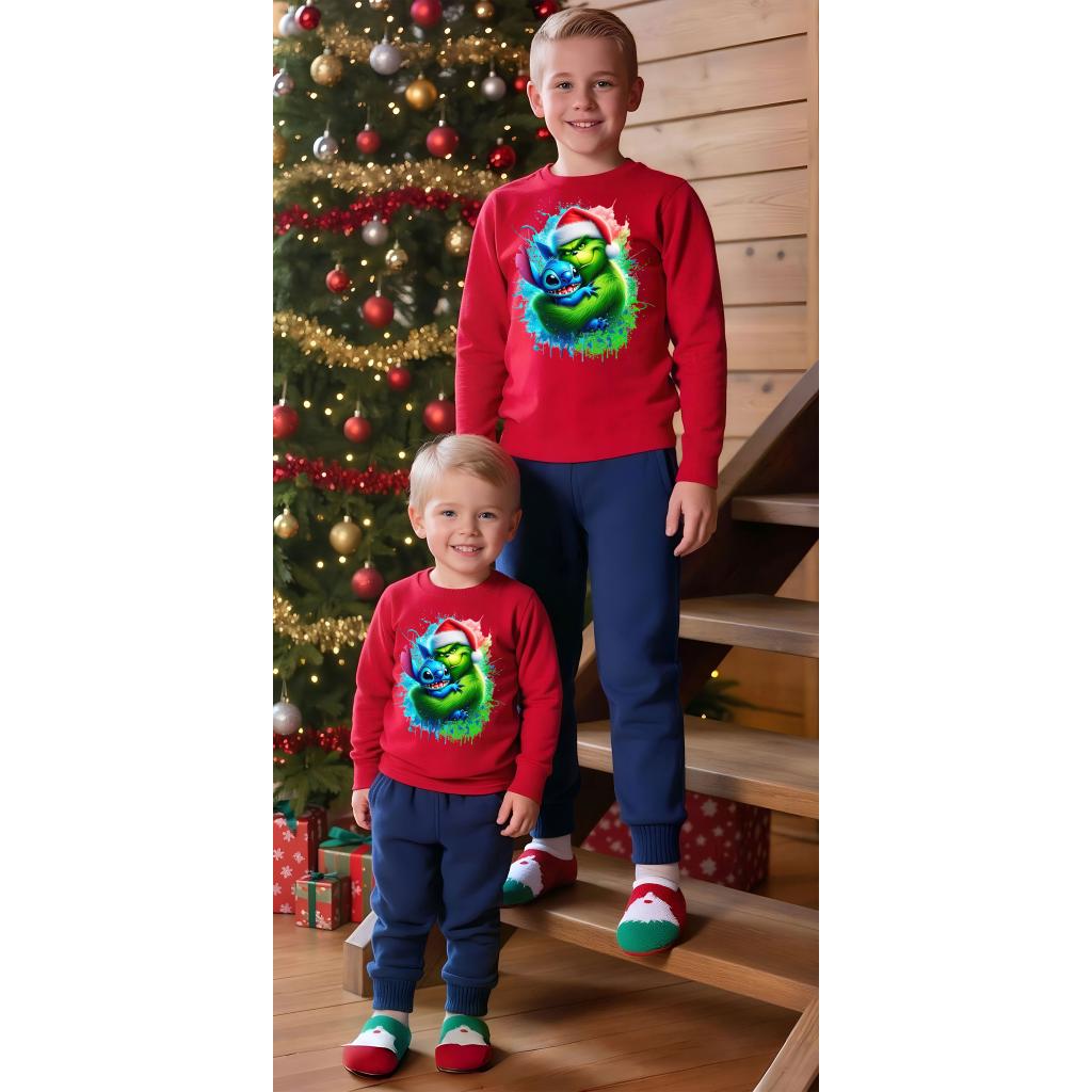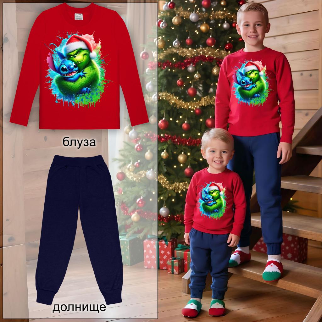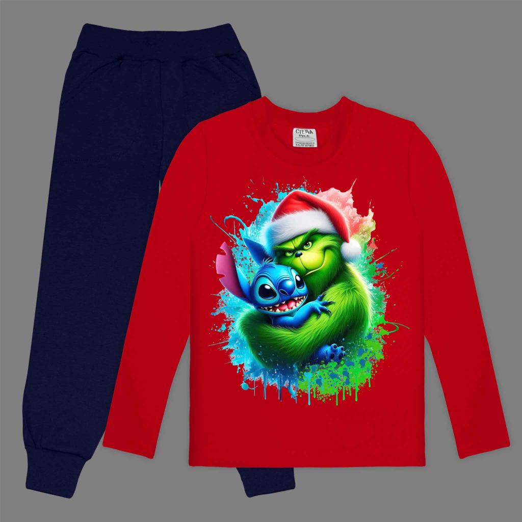 Комплект тънък 2 части (б/д) Гринч и Стич на коледа в червено