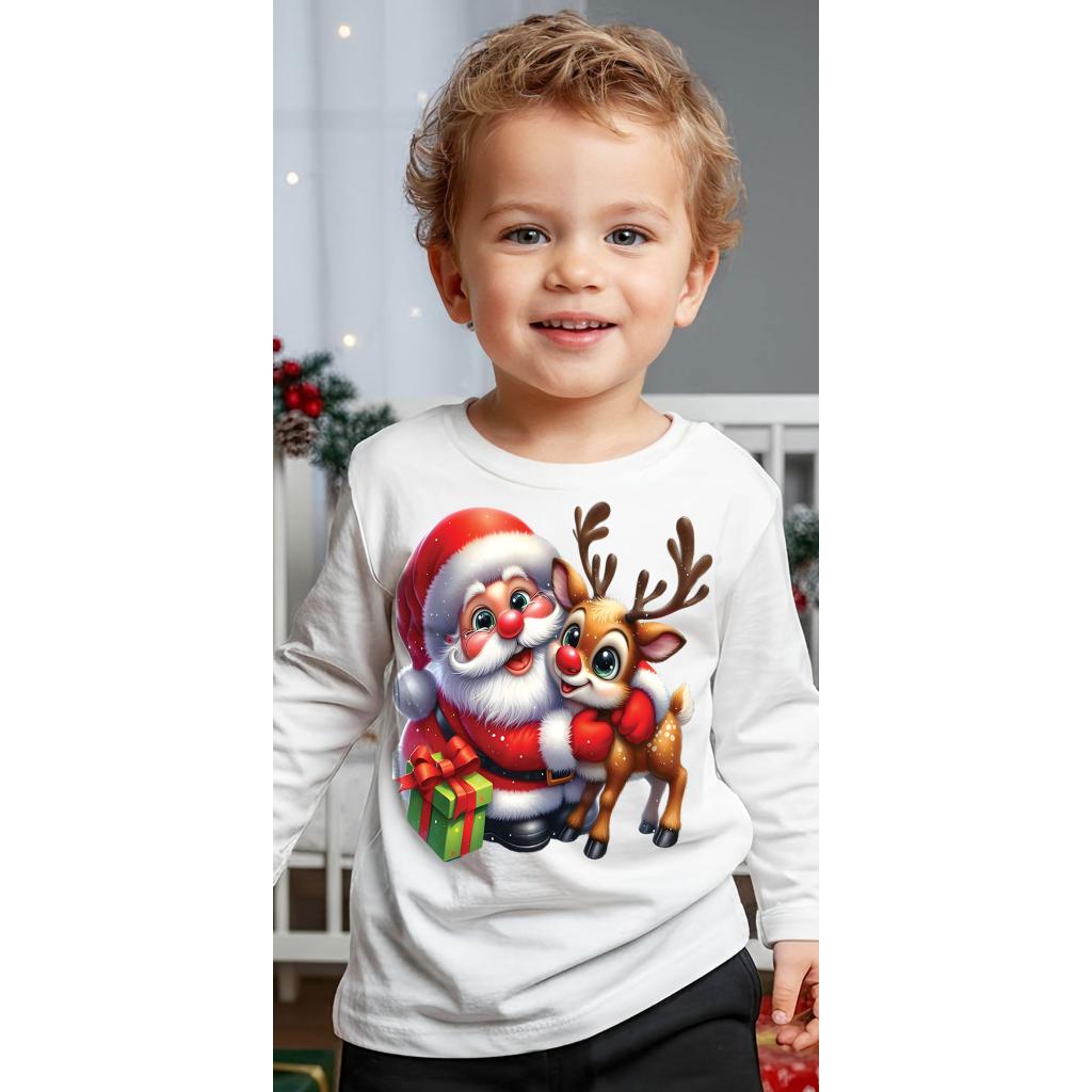 Внесете много сладост и празничен чар в гардероба на вашето дете с тази бяла блуза с дълъг ръкав! Тя е идеалният избор за всеки, който обича класическите коледни герои, представени по един нов, весел начин.