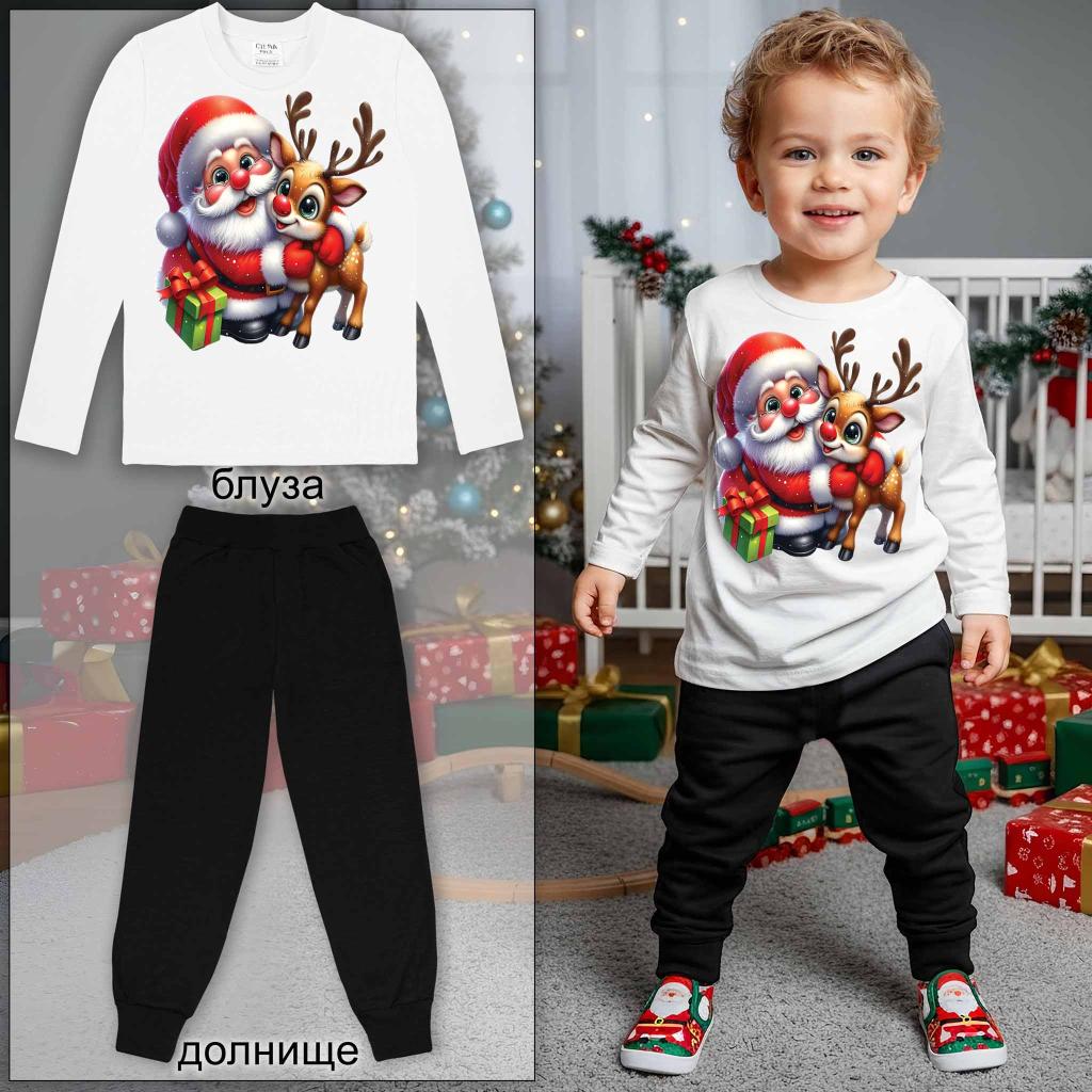Внесете класически коледен чар и невероятен уют в гардероба на вашето дете! Този комплект е създаден за незабравими празнични моменти, като съчетава чистотата на бялото с практичността на черното.