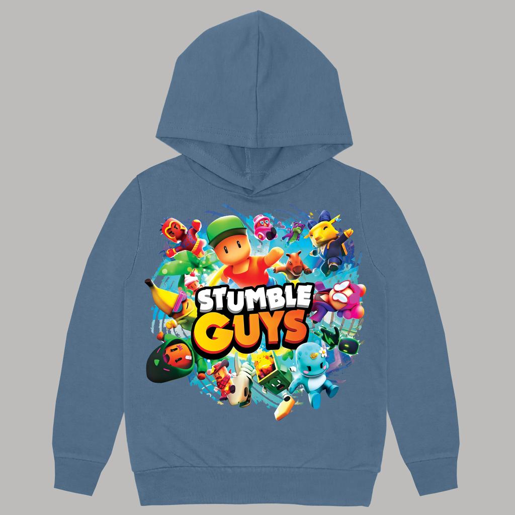 Принт: Голям, цветен принт на логото STUMBLE GUYS в центъра, заобиколено от многобройните весели герои от играта.