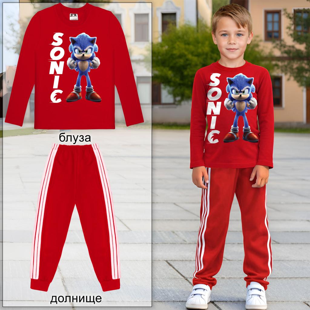 👕 Комплект Супер Соник – блуза и долнище в червено 👖