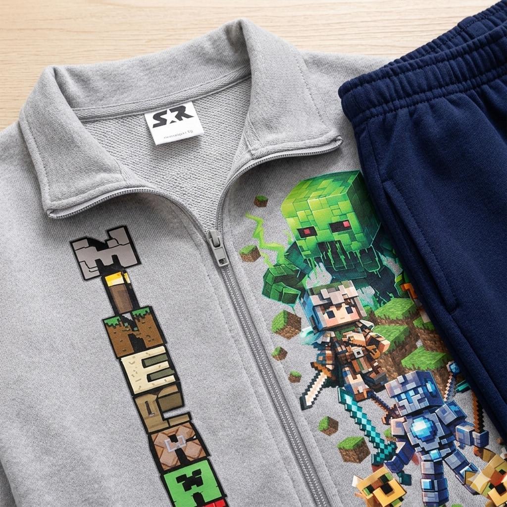 Приключението не е само в играта – то продължава и навън! ⚔️ Черният Minecraft суичър с цип + удобно тъмно долнище превръщат всеки ден в мисия за стил и комфорт! 🚀