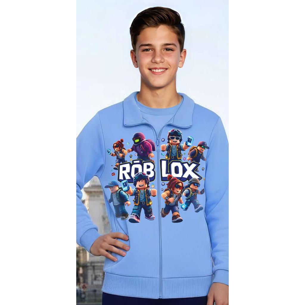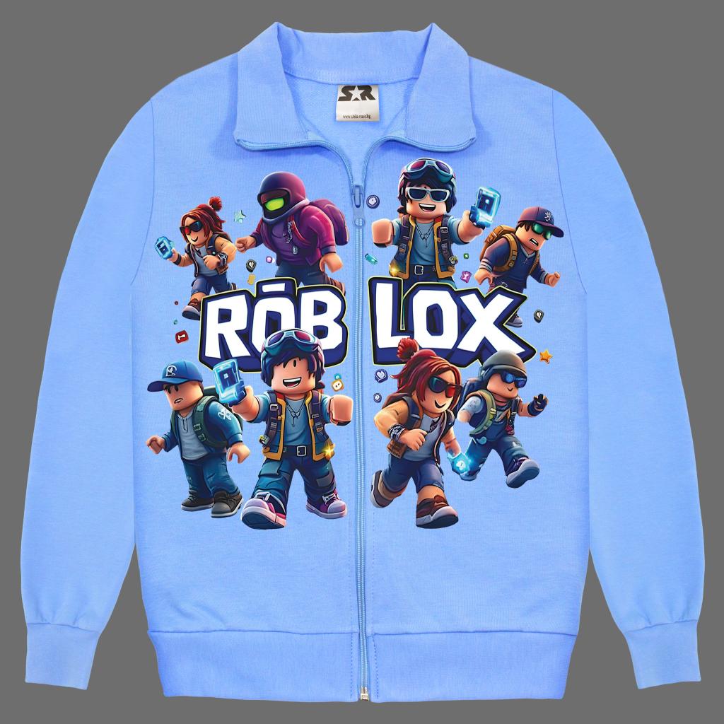 🎮 Детски суичър с цип “ROBLOX Team Adventure” – светлосин
