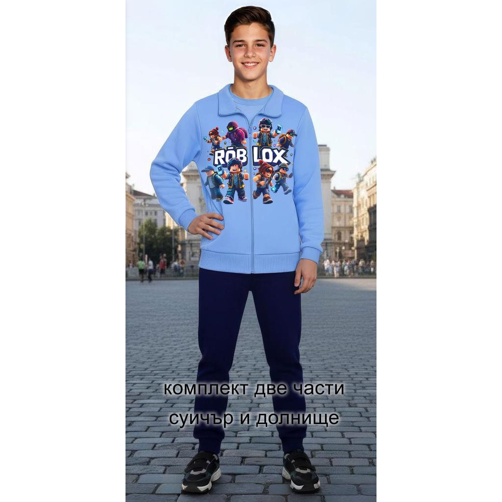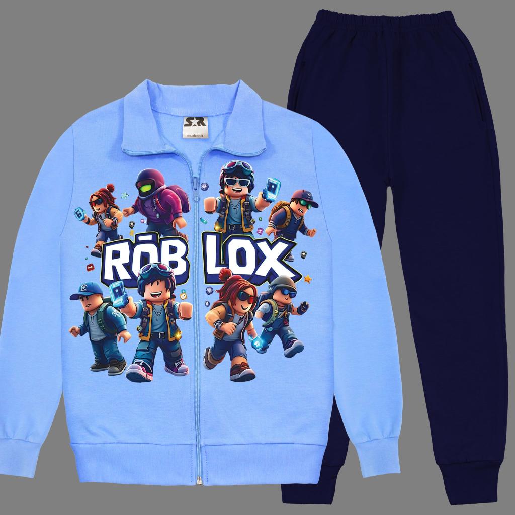 👕 Комфортен и модерен детски комплект Roblox, включващ светлосин суичър с цип и едноцветно долнище от трико.