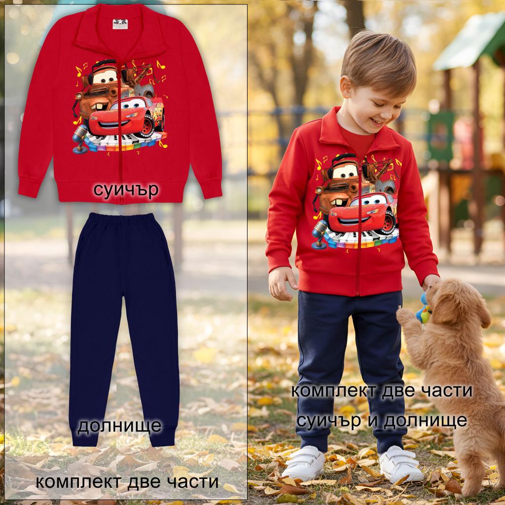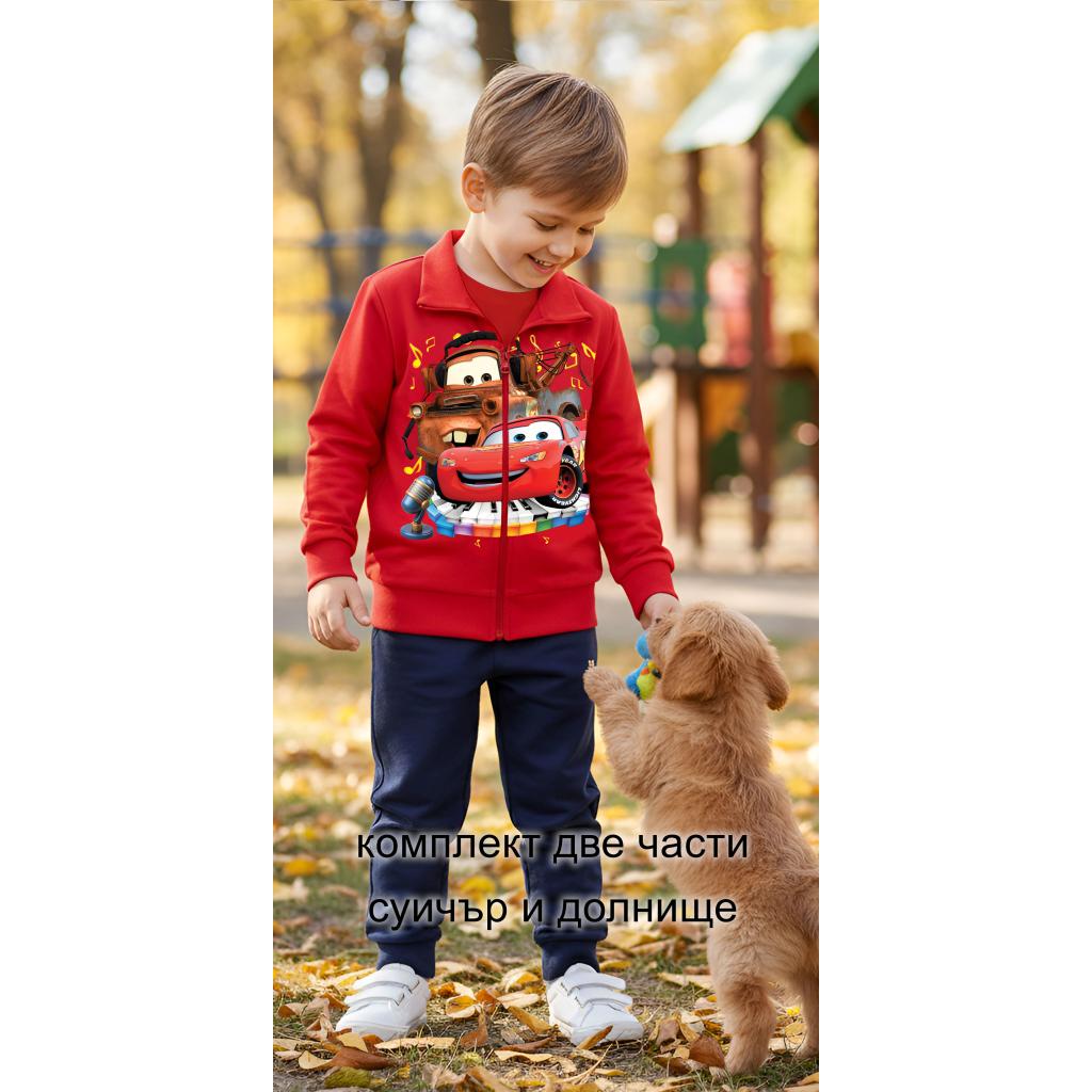 Скорост, усмивки и комфорт! ❤️ Нашият червен McQueen комплект е идеален за малките фенове на приключенията! Суичърът е в ярко червено, с модерна кройка и любимите герои, които вдъхновяват всяко дете да бъде смело и уверено. В комбинация с тъмно долнище, това е сет, който съчетава стил, удобство и настроение.