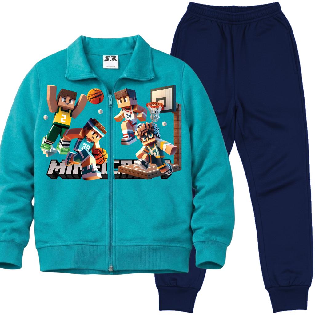 Мек и удобен тъмносин суичър с цип и яка, изработен от висококачествен български памучен плат, с ярък ДТФ печат на Minecraft баскетболни герои.