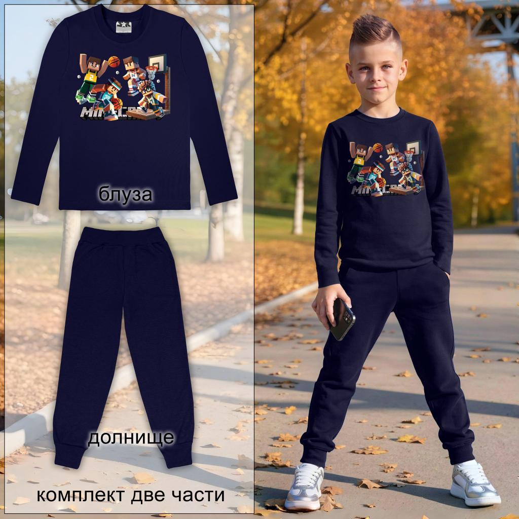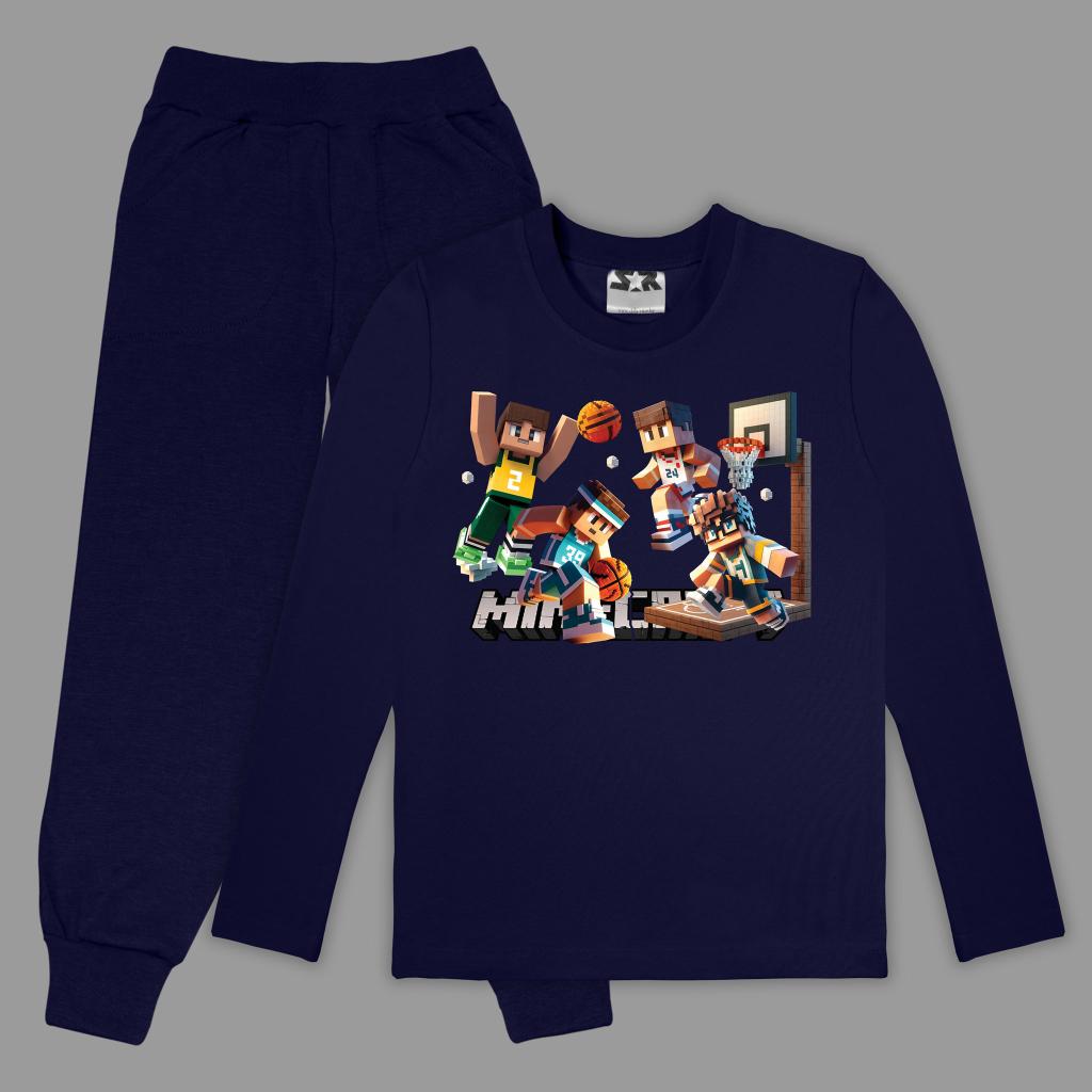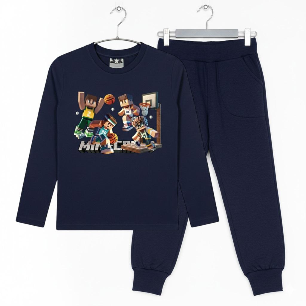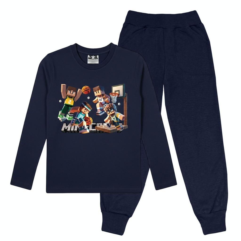 Блузата с ефектна Minecraft Basketball картинка и тъмното спортно долнище са перфектната комбинация за училище, игри навън и семейни разходки.