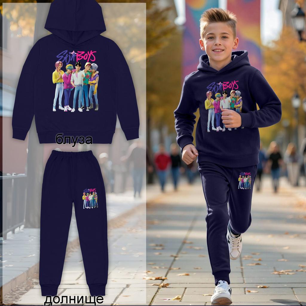 💫 За модерните момчета и момичета, които искат да изразят себе си с увереност и стил! Този страхотен комплект комбинира блуза с ярък KPOP принт и тъмно, изчистено долнище, за да предложи едновременно комфорт и визия, която се забелязва!
