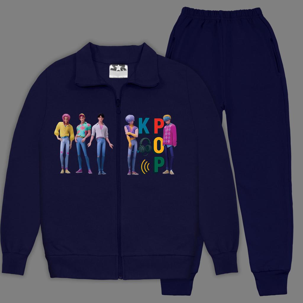 Модерният суичър “K-POP Star” в наситено тъмносиньо и едноцветно долнище в същия тон създават перфектен баланс между удобство и визия. Идеален за училище, игри или уикенд приключения с приятели! ✨