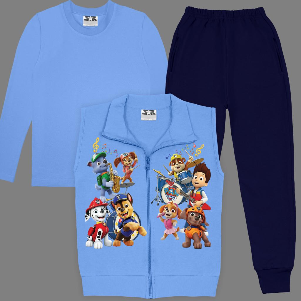 Този комплект е създаден за малките герои, които не спират да играят и мечтаят! Състои се от удобен елек с любимите герои от Paw Patrol, едноцветна мека блуза в синьо и тъмно долнище – идеалната комбинация за ежедневни приключения, детска градина или разходка в парка.
