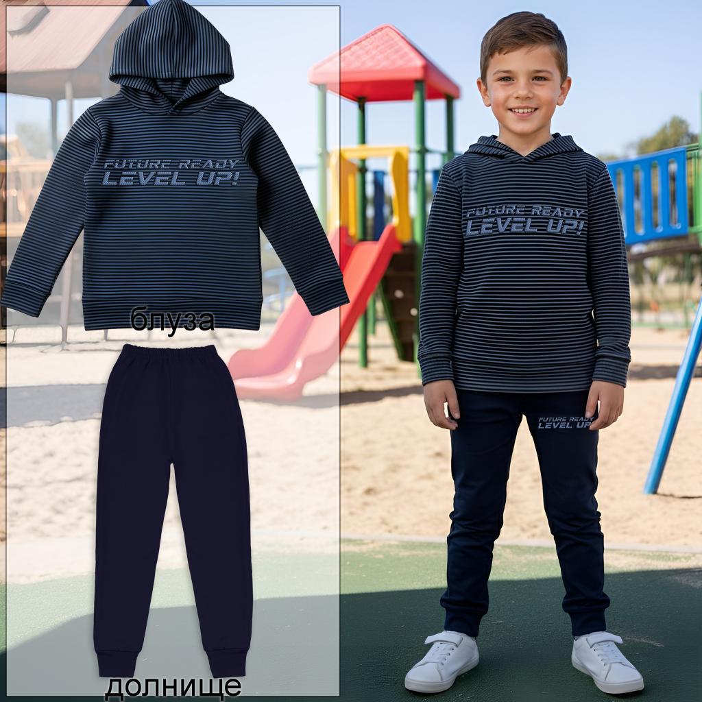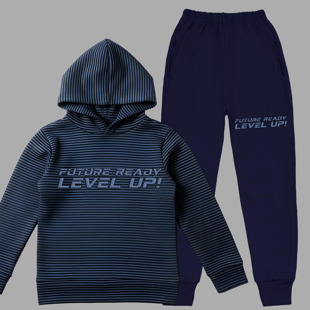 💙 Комплект „LEVEL UP!“ – суичър + тъмно едноцветно долнище