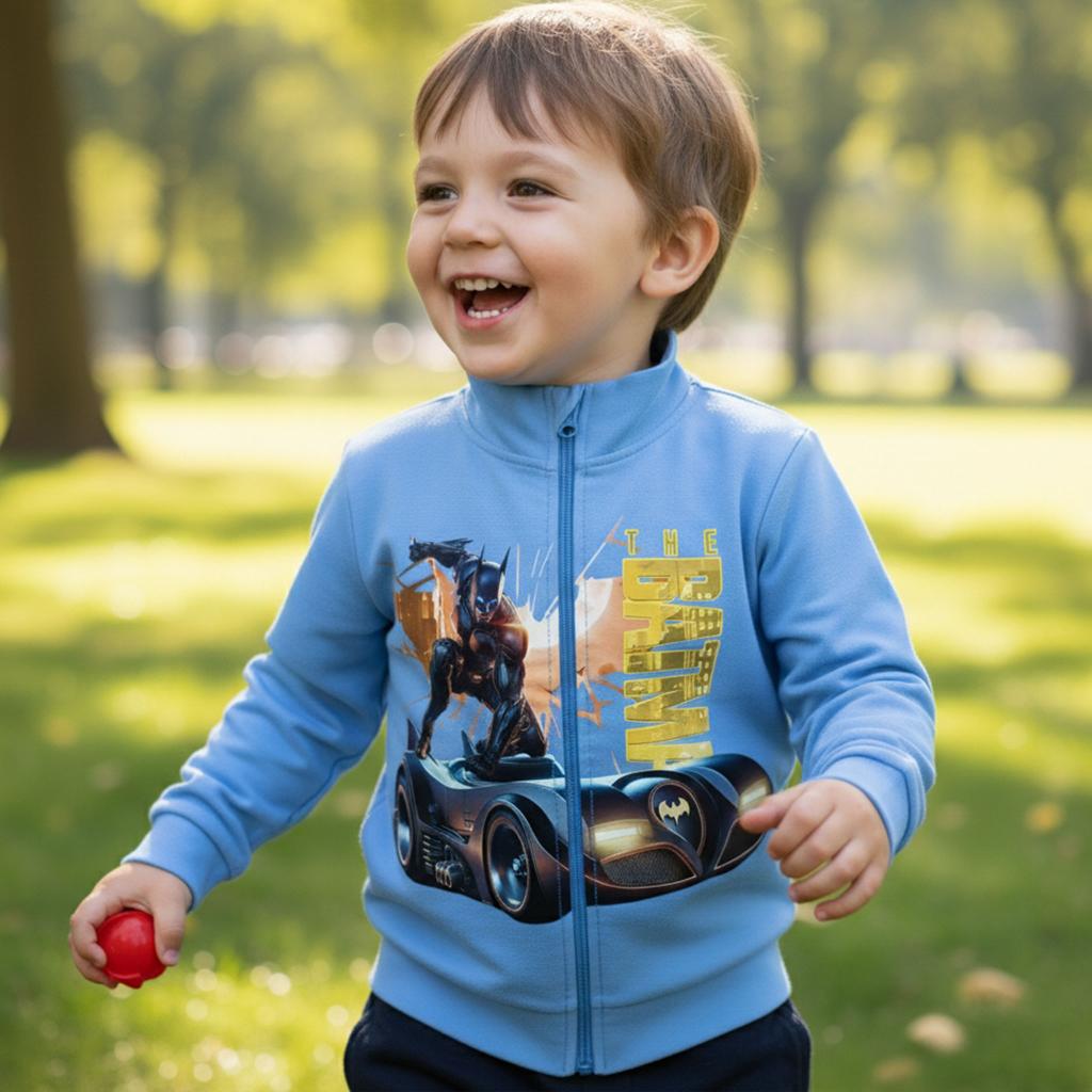 Този суичър е създаден за истинските фенове на действието! Мек, удобен и с впечатляващ принт на Батман върху неговата мощна кола – перфектен за училище, разходки и игри.