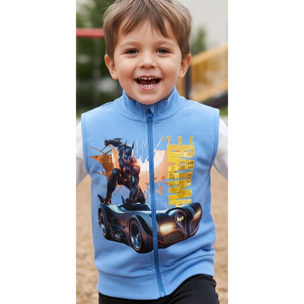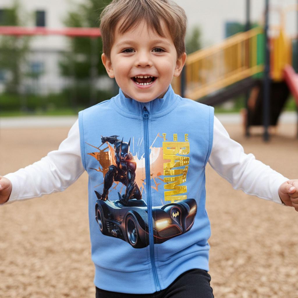 Лек, практичен и супер геройски! Този елек в тъмни тонове с впечатляваща визия на Батман е идеален за активни деца, които обичат движението и обожават да се чувстват специални. Стабилната предна част и мекият гръб осигуряват комфорт през целия ден, а модният силует позволява да се комбинира с всичко.