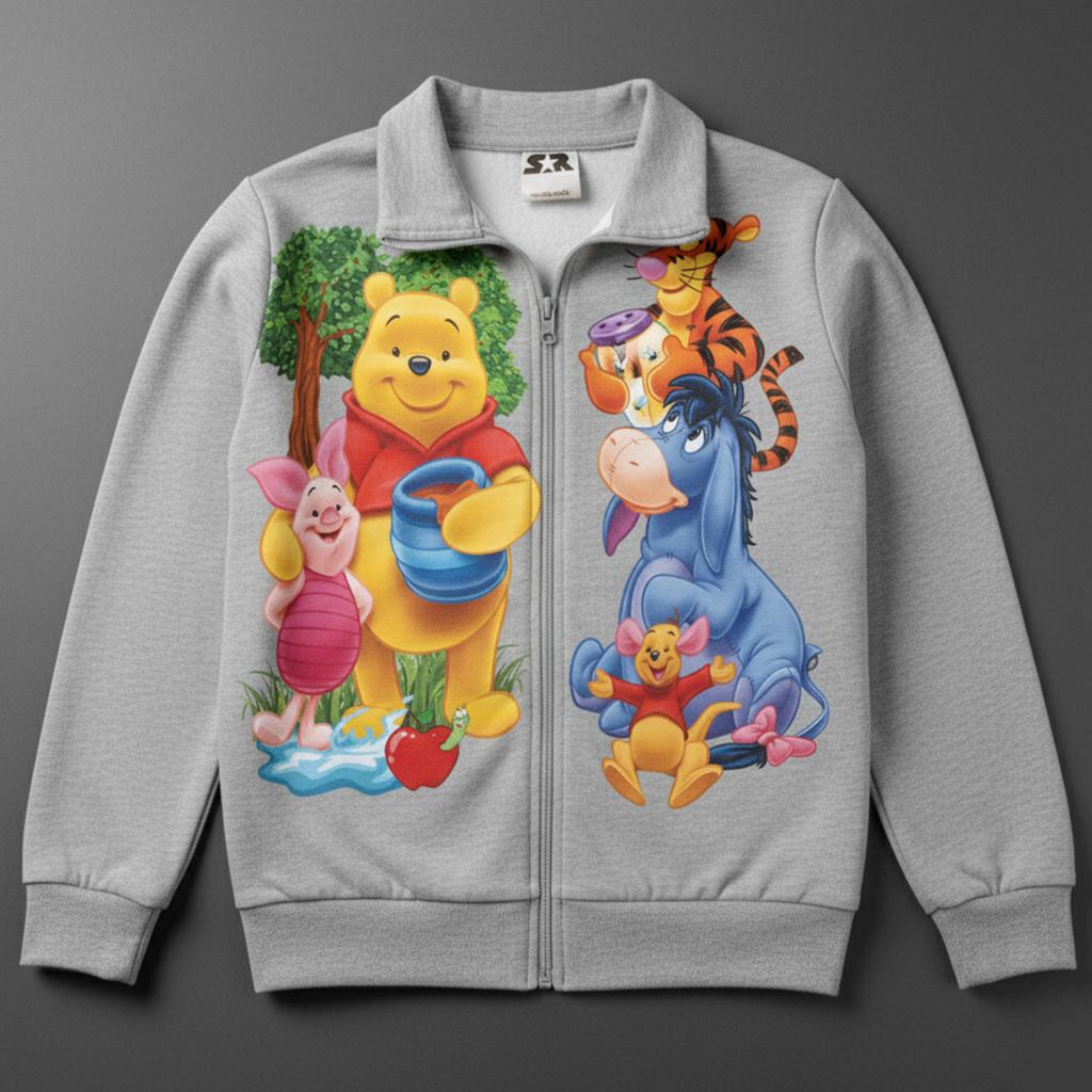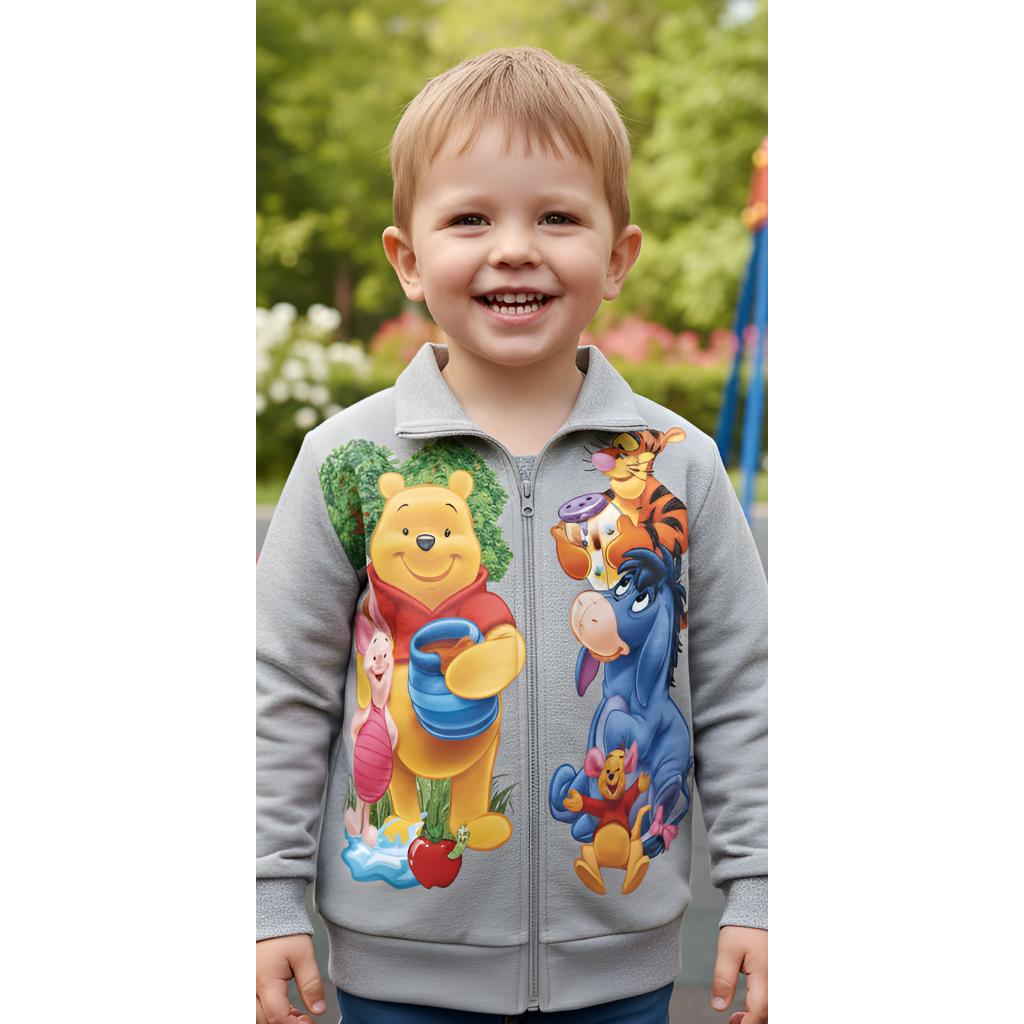 Когато дрехите разказват истории, децата ги обличат с усмивка! Това удобно и меко горнище събира всички любими герои от Голямата гора — Мечо Пух, Прасчо, Айори, Тигър и Ру — в едно шарено приключение.