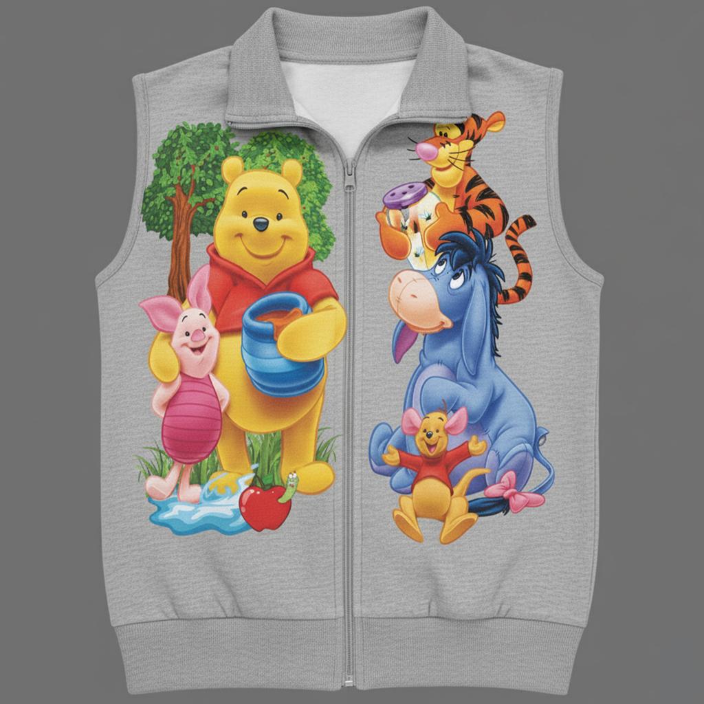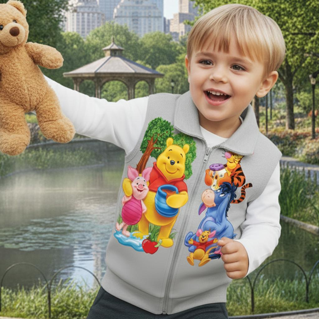 Този елек с Мечо Пух е идеалният малък помощник за всяко приключение — топъл, удобен и толкова чаровен, че детето няма да иска да го свали!