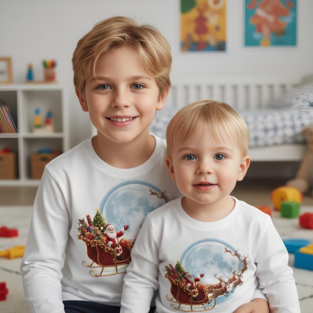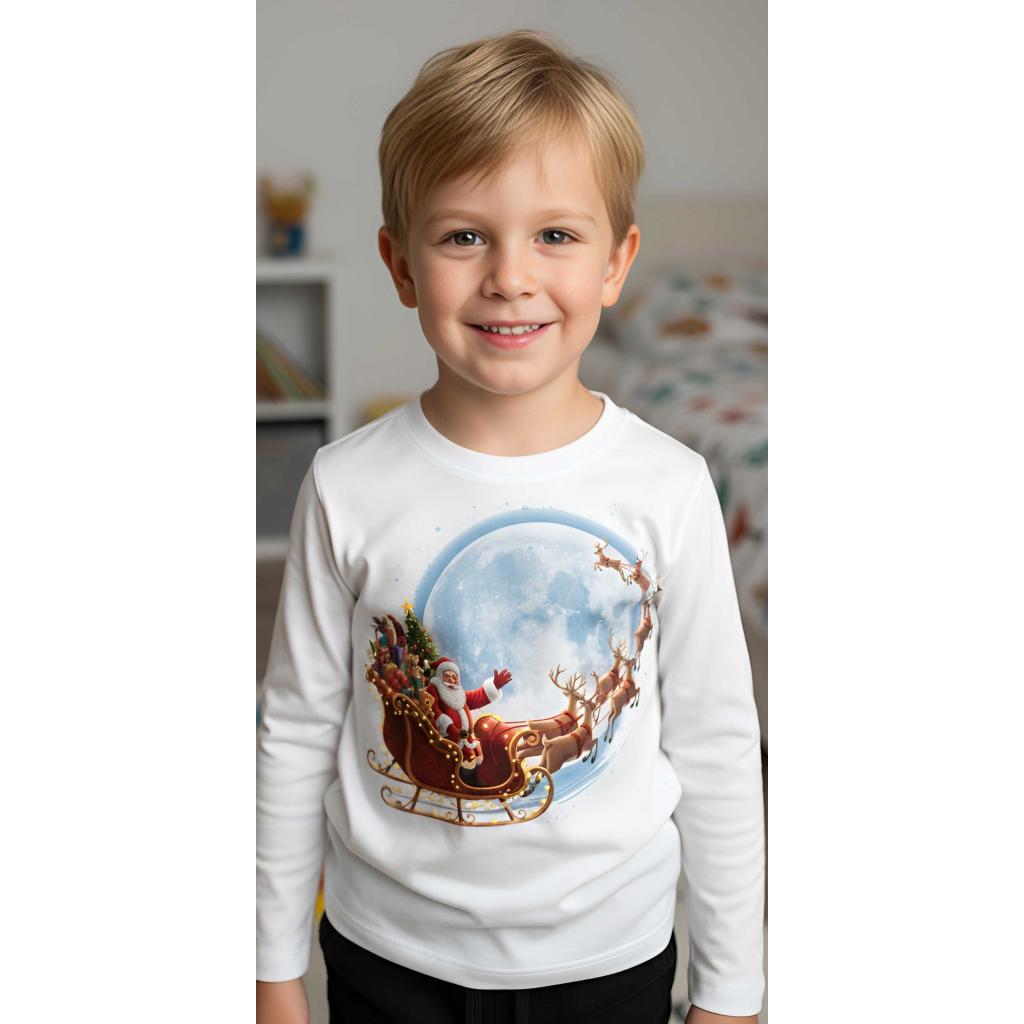 Вашето дете ще сияе като коледна лампичка, когато Дядо Коледа и елените му „прелетят“ върху меката бяла материя. Идеална за училище, празнични снимки и за моментите, в които духът на Коледа просто не побира в джобовете! 🎅🦌🎁