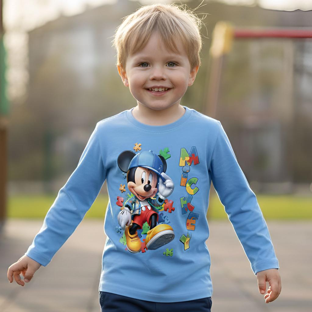 Тази блуза с Мики Маус в пъзел стил е истинска доза настроение, която превръща дори обикновения ден в приключение! 💙✨