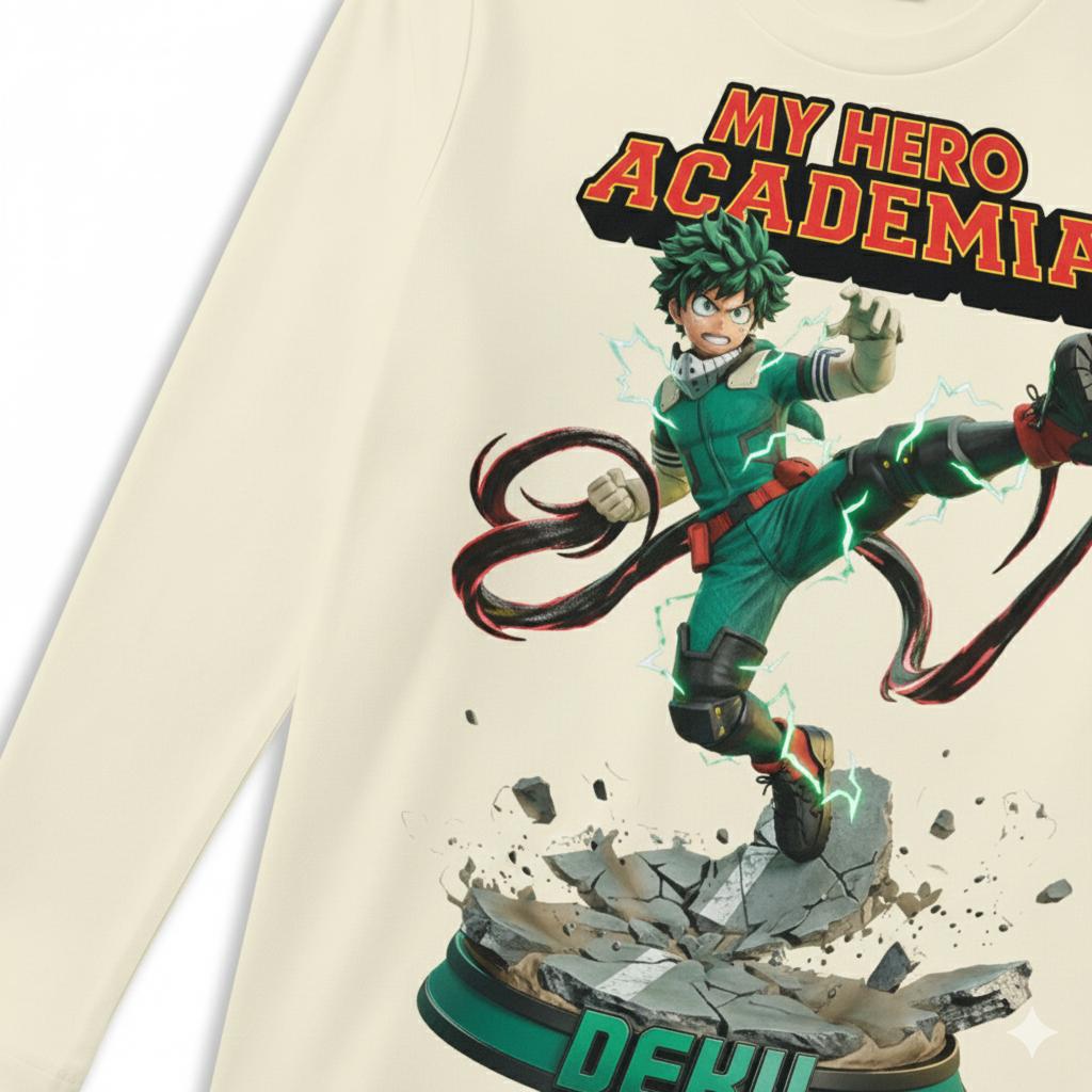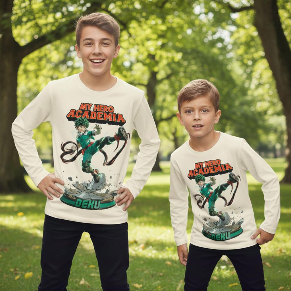 Подарете на младия фен силата и духа на Изуку Мидория – Деку от хитовата аниме поредица My Hero Academia! Тази стилна блуза е идеална за всеки ден, училище или за превръщане в любимия герой.