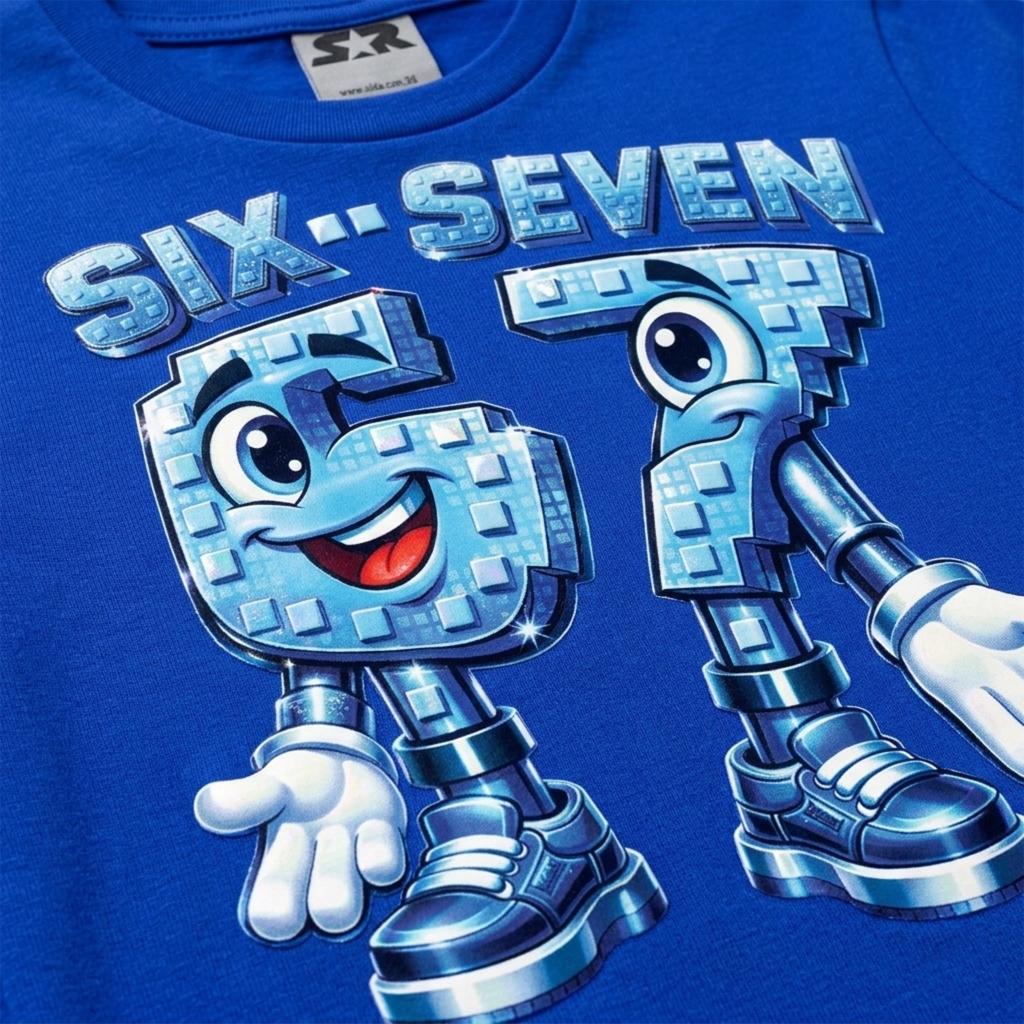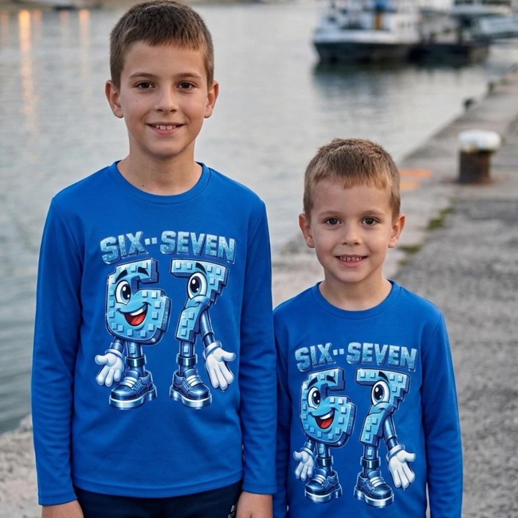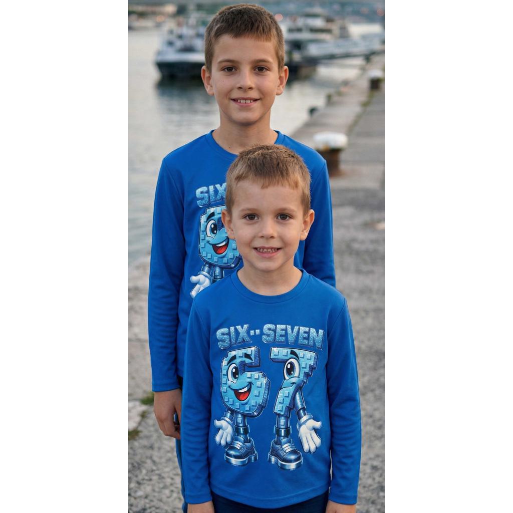 Стилна и удобна тънка блуза в класически тъмносин цвят със същата атрактивна „Six & Seven“ визия. Моделът е лек, практичен и подходящ за ежедневието на активните деца – за училище, разходки и игри.