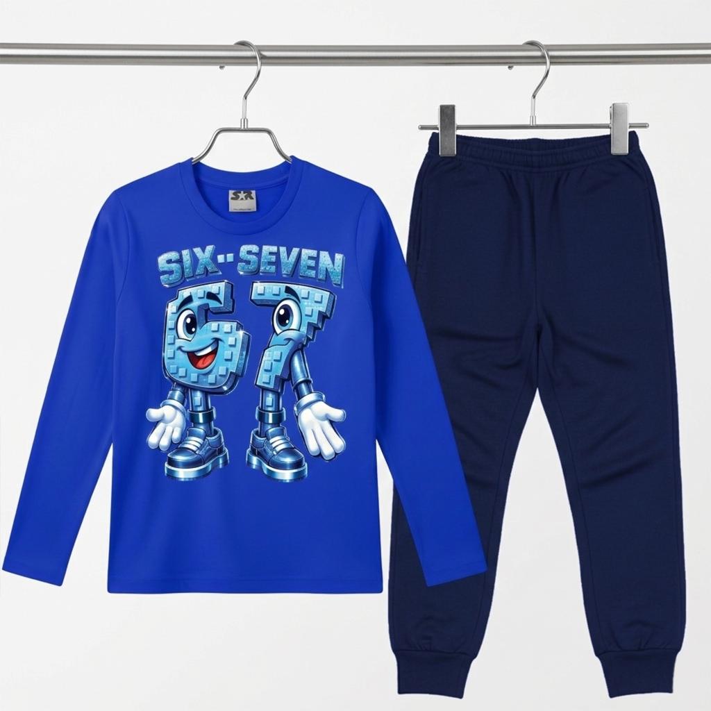 Практичен и стилен спортен сет в класически тъмносин цвят със същата ефектна „Six & Seven“ визия. Подходящ за училище, спорт и свободно време, комплектът съчетава удобство, издръжливост и модерно излъчване.