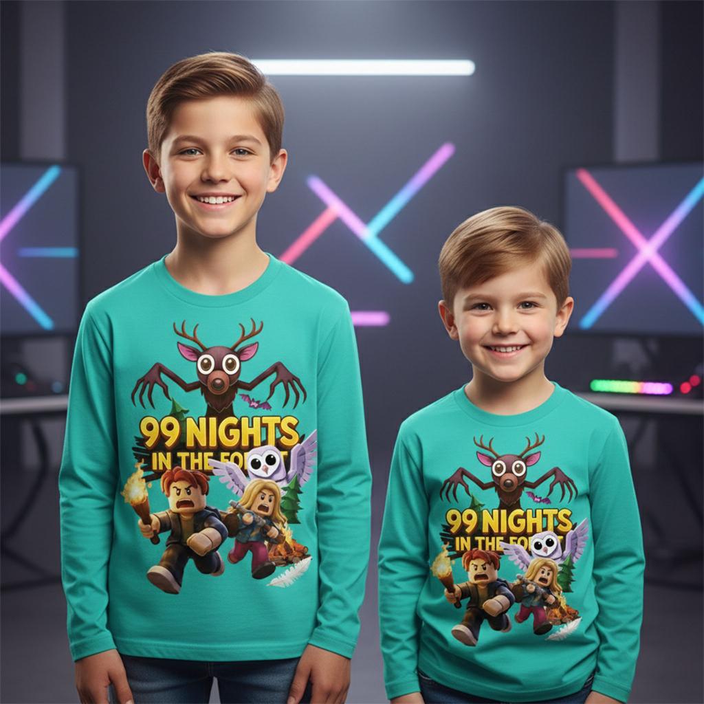 Свежа, цветна и впечатляваща – тази детска блуза в ментов нюанс привлича вниманието с динамичен приключенски принт „99 Nights in the Forest“. Дизайнът пресъздава вълнуваща горска сцена с герои и ярки детайли, които децата обожават.