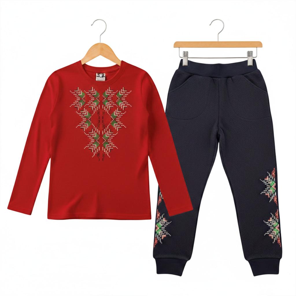 Комплект тънък 2 части (б/д) Фолклорни мотиви червено
