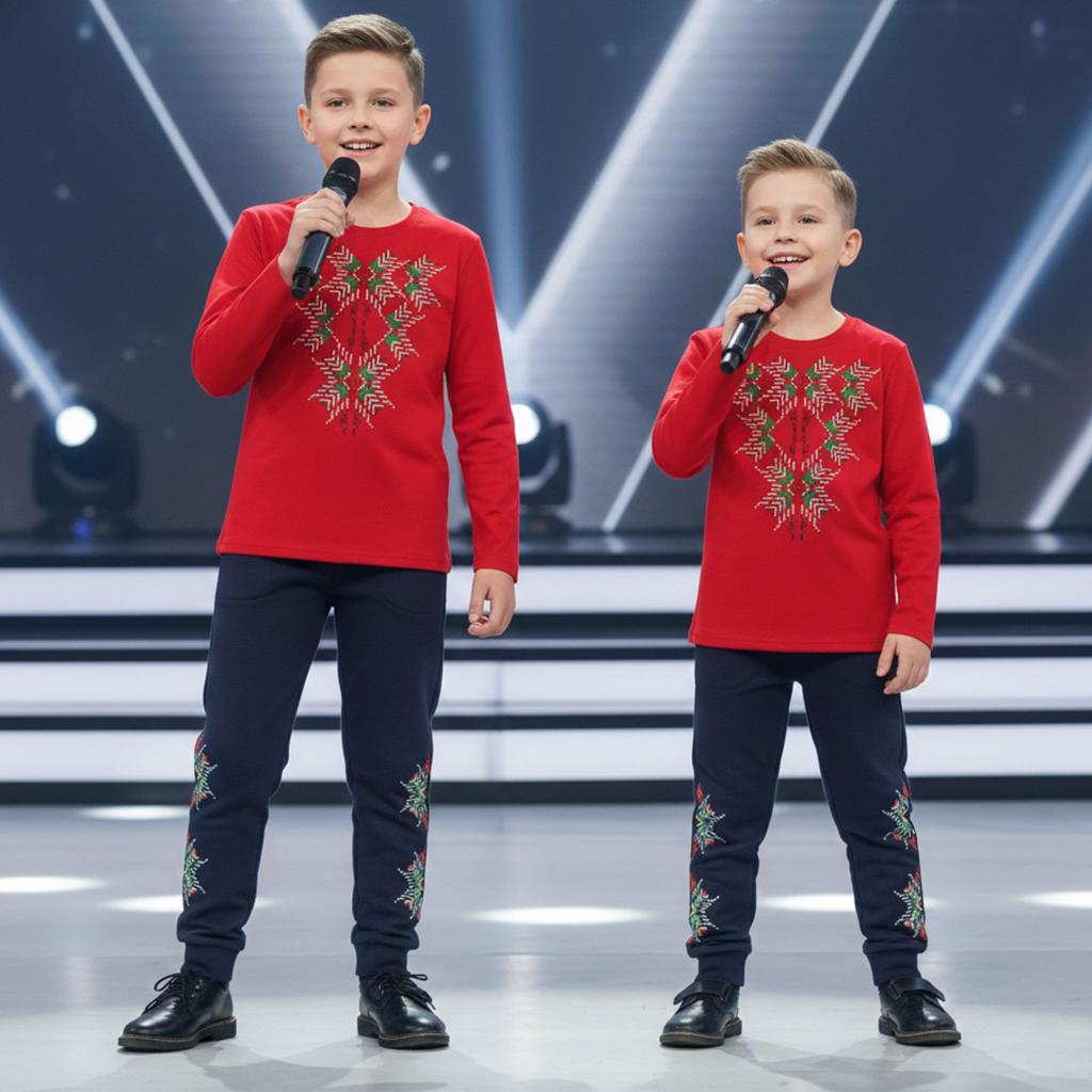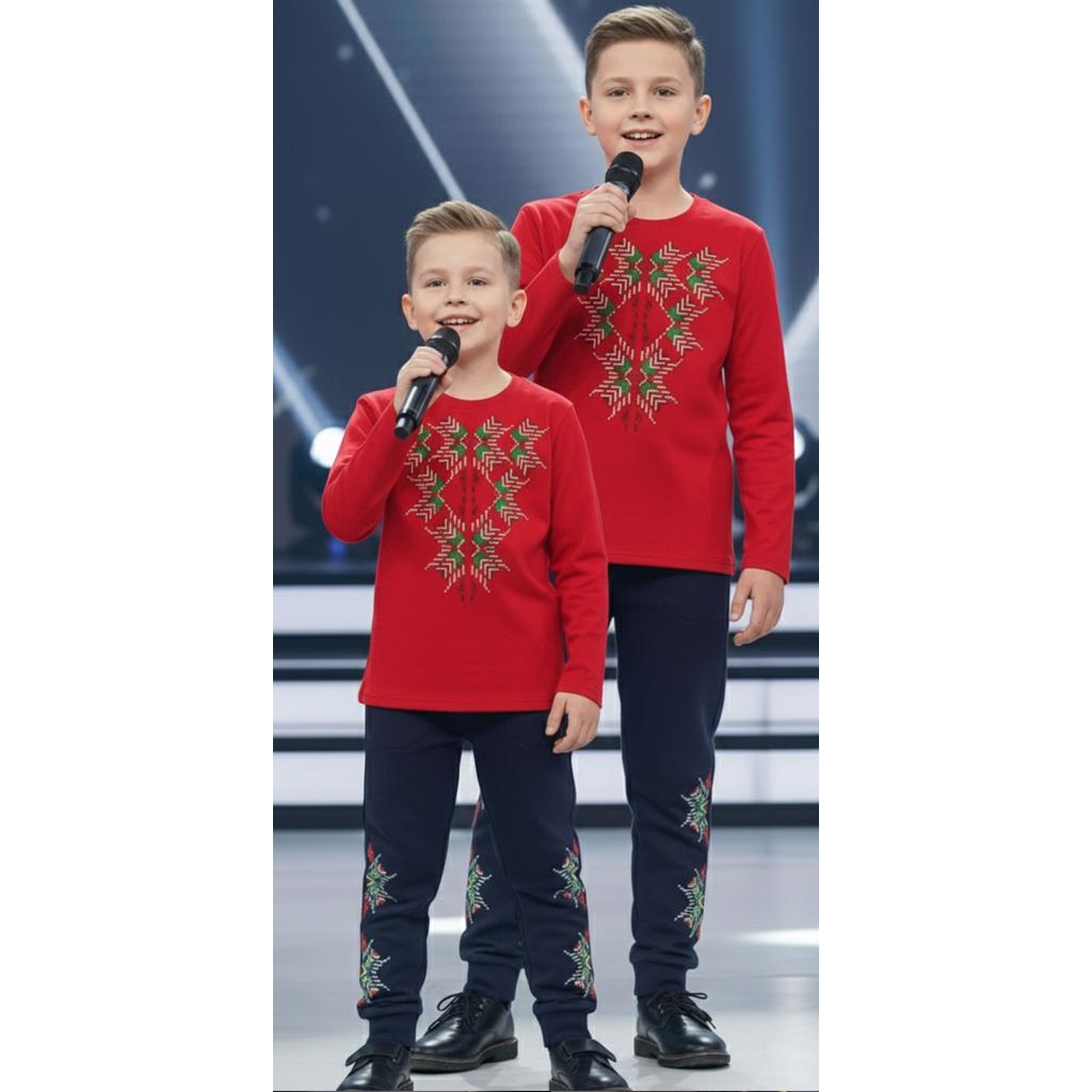 Детски комплект от блуза с дълъг ръкав и долнище за момче.