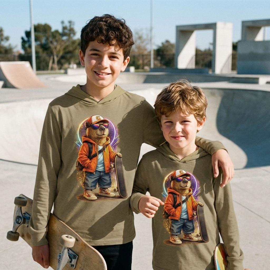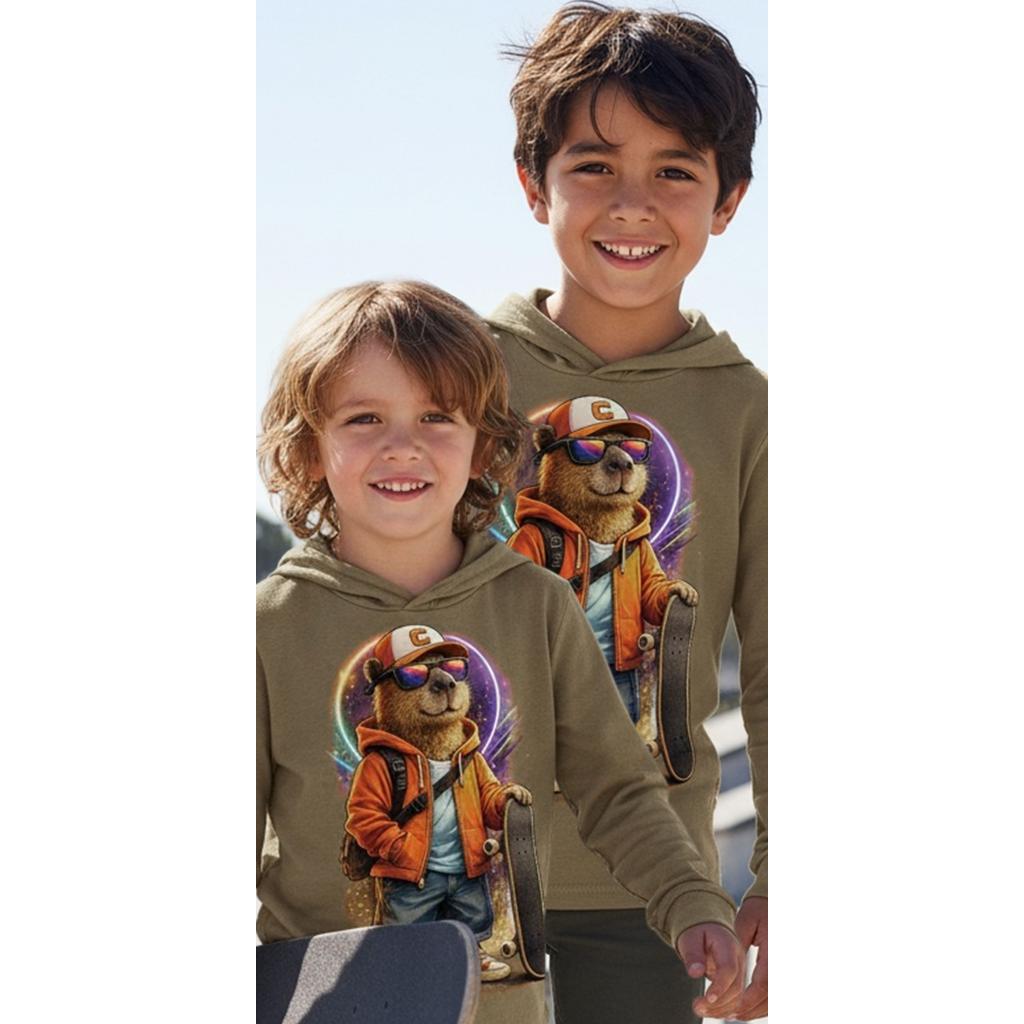Модерната капибара със скейт визия, очила и градско излъчване превръща всяко момче в малък герой на улицата. Цветът каки придава завършен, стилен и лесен за комбиниране вид.