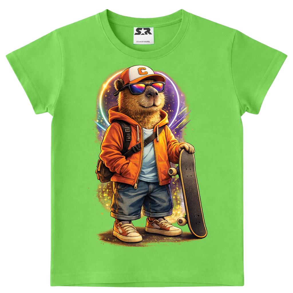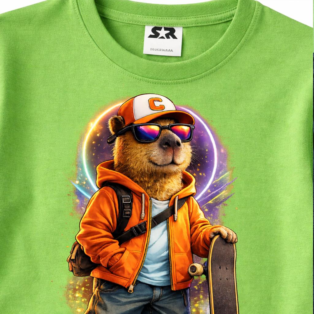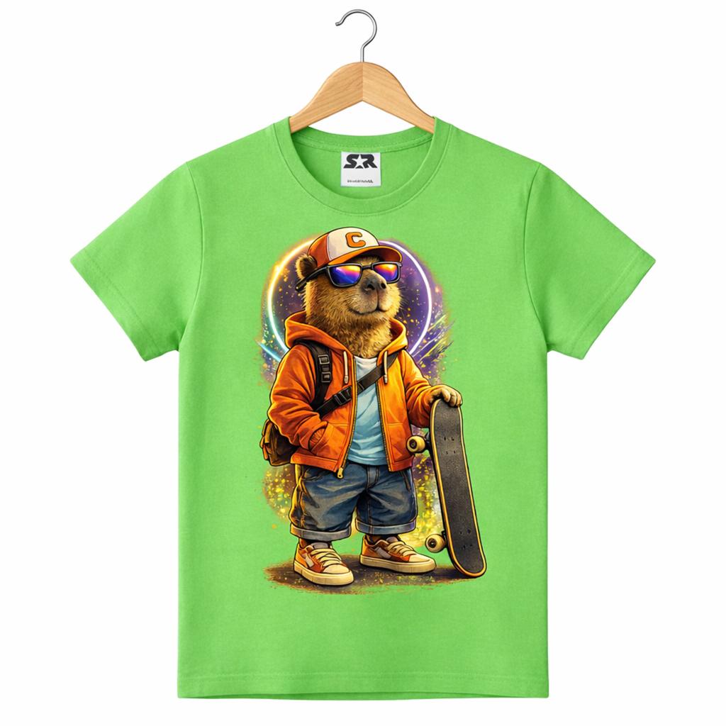 🛹💚 Зелена тениска „Skate Капибара“ – стил, настроение и щипка забавление!