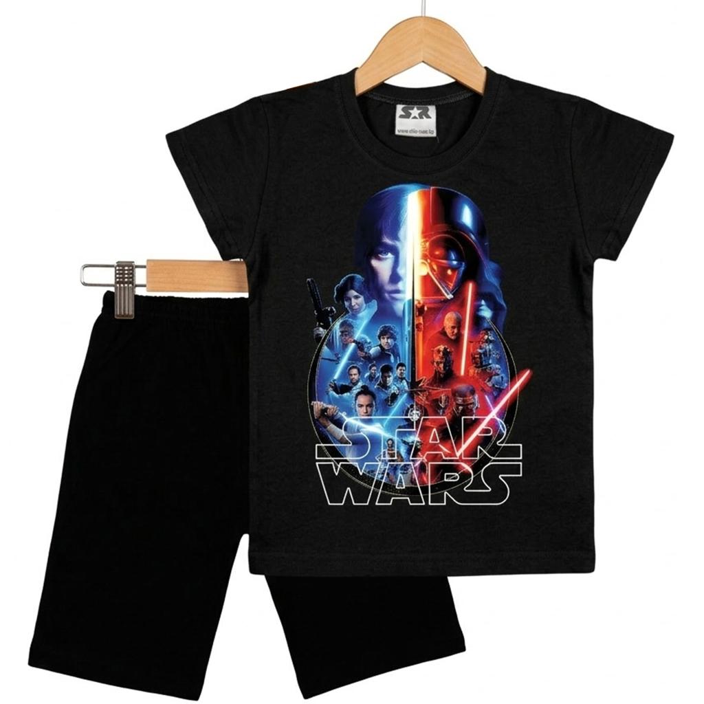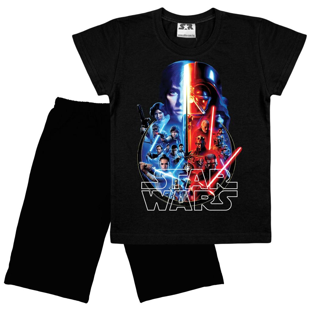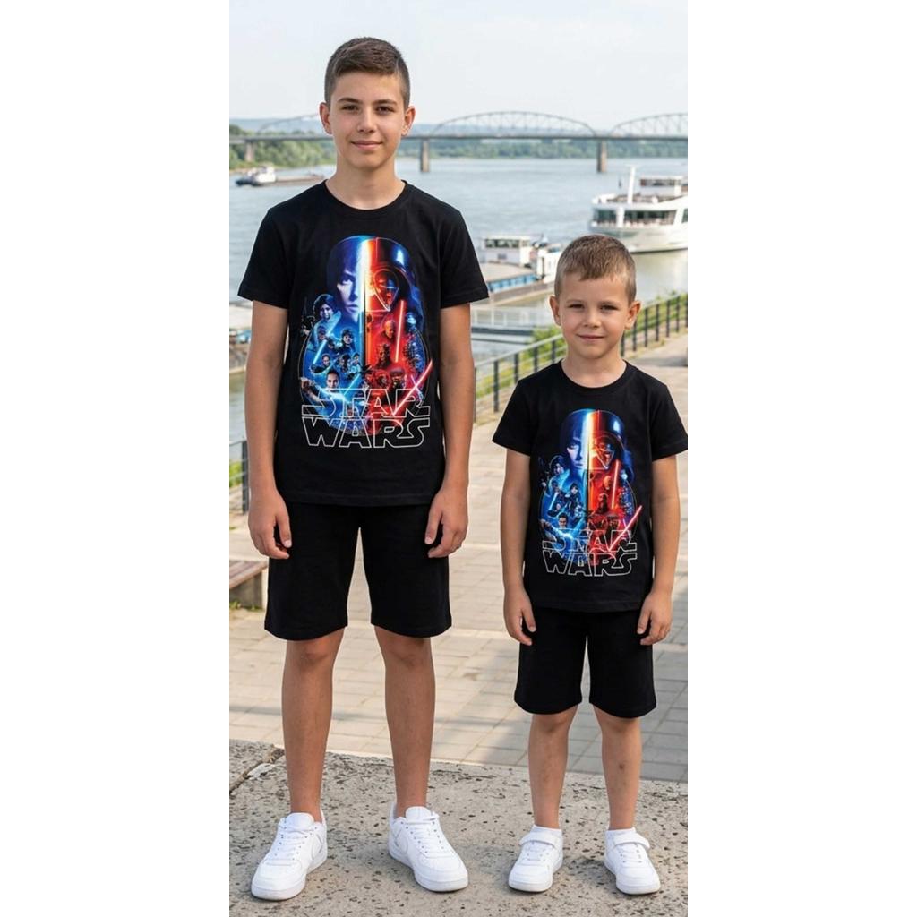 Стилен и впечатляващ детски комплект за малките фенове на легендарната сага Star Wars. Комплектът включва черна тениска с ефектен дизайн и черни бермуди в същия цвят, които създават модерна и завършена визия.