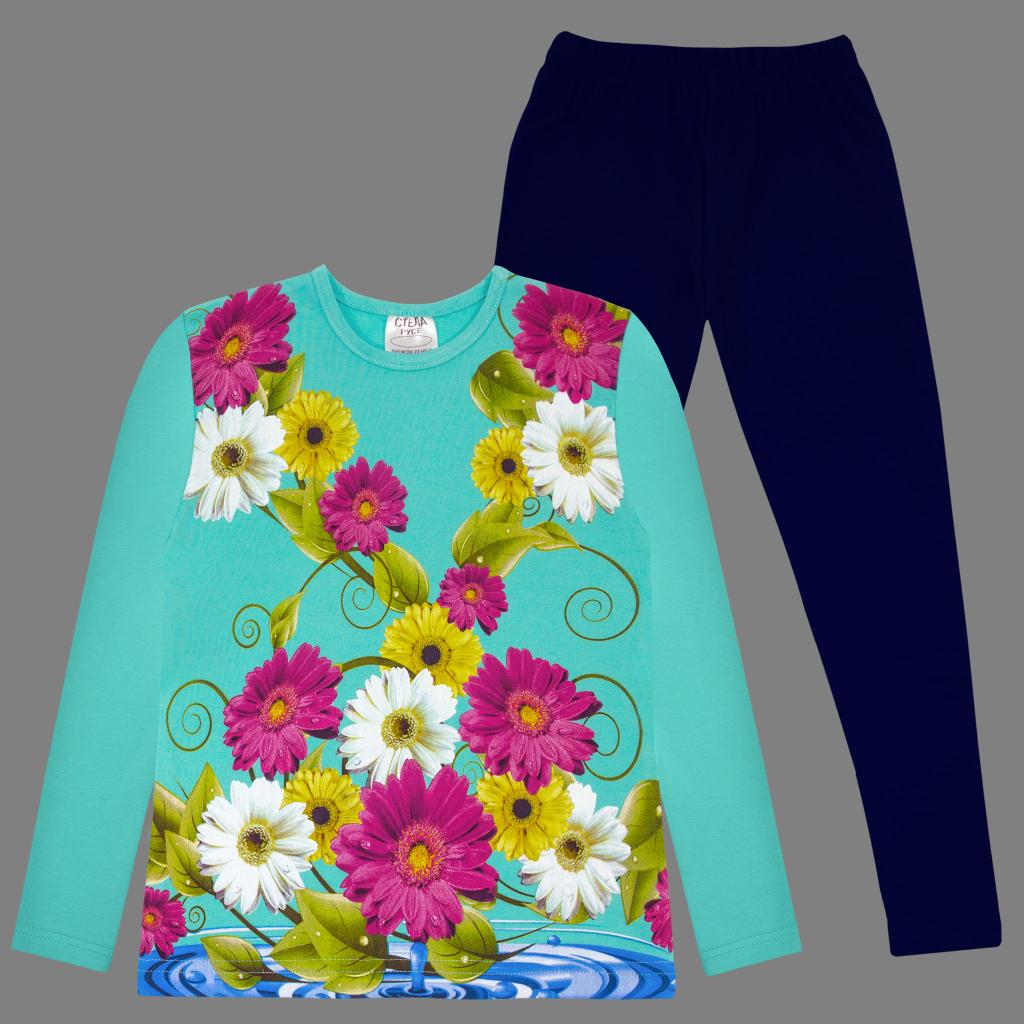 Комплект тънък 2 части (б/к) с Цветя в мента